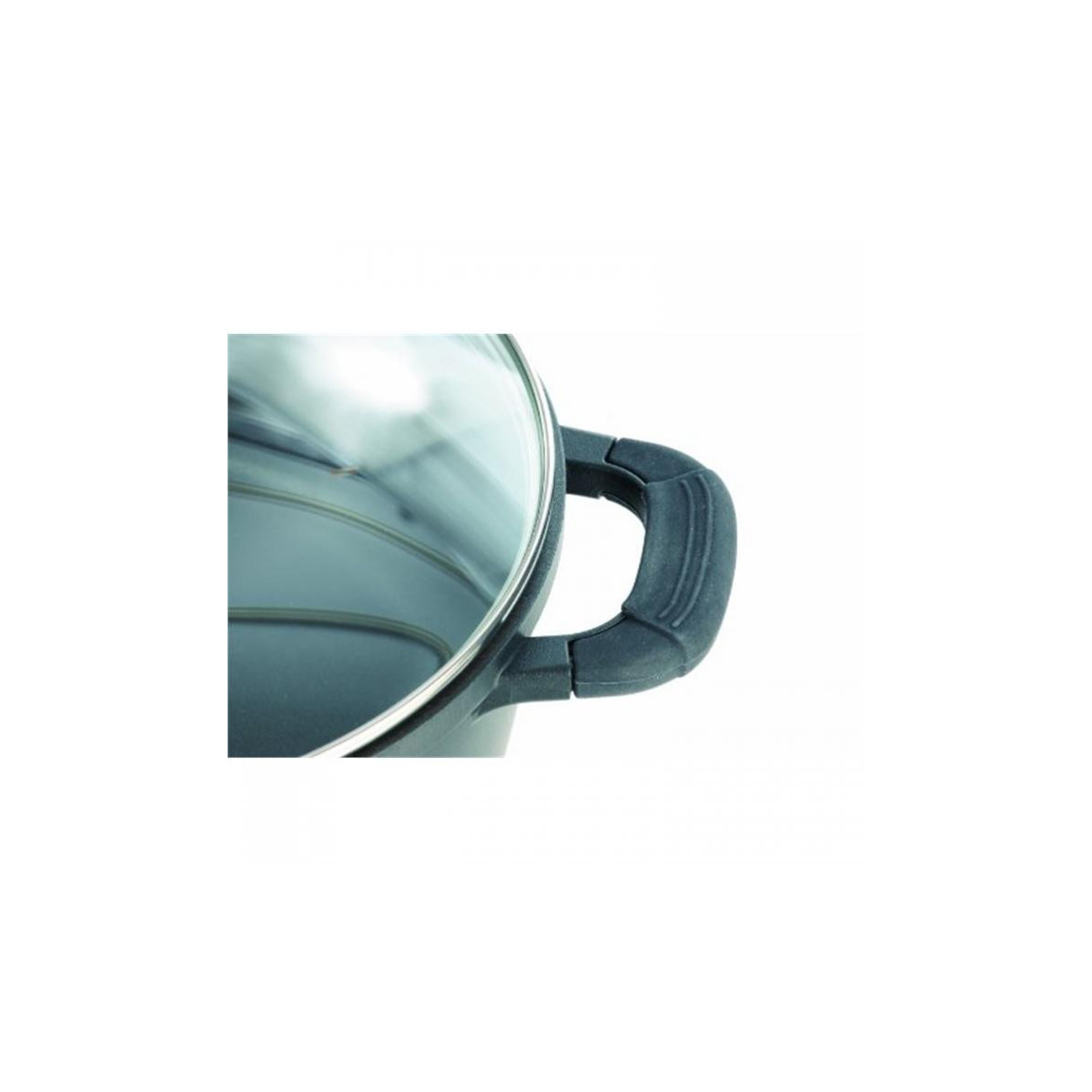 Casseruola con coperchio Silcoguss noir in fusione d'alluminio anallergica Coperchio in vetro con pomolo in silicone Manici in silicone Scala graduata interna Fondo idoneo per tutte le fonti di calore, anche per induzione resistente in forno fino a 180°C Misura: Ø 20 Contenuto: 2,8 litri