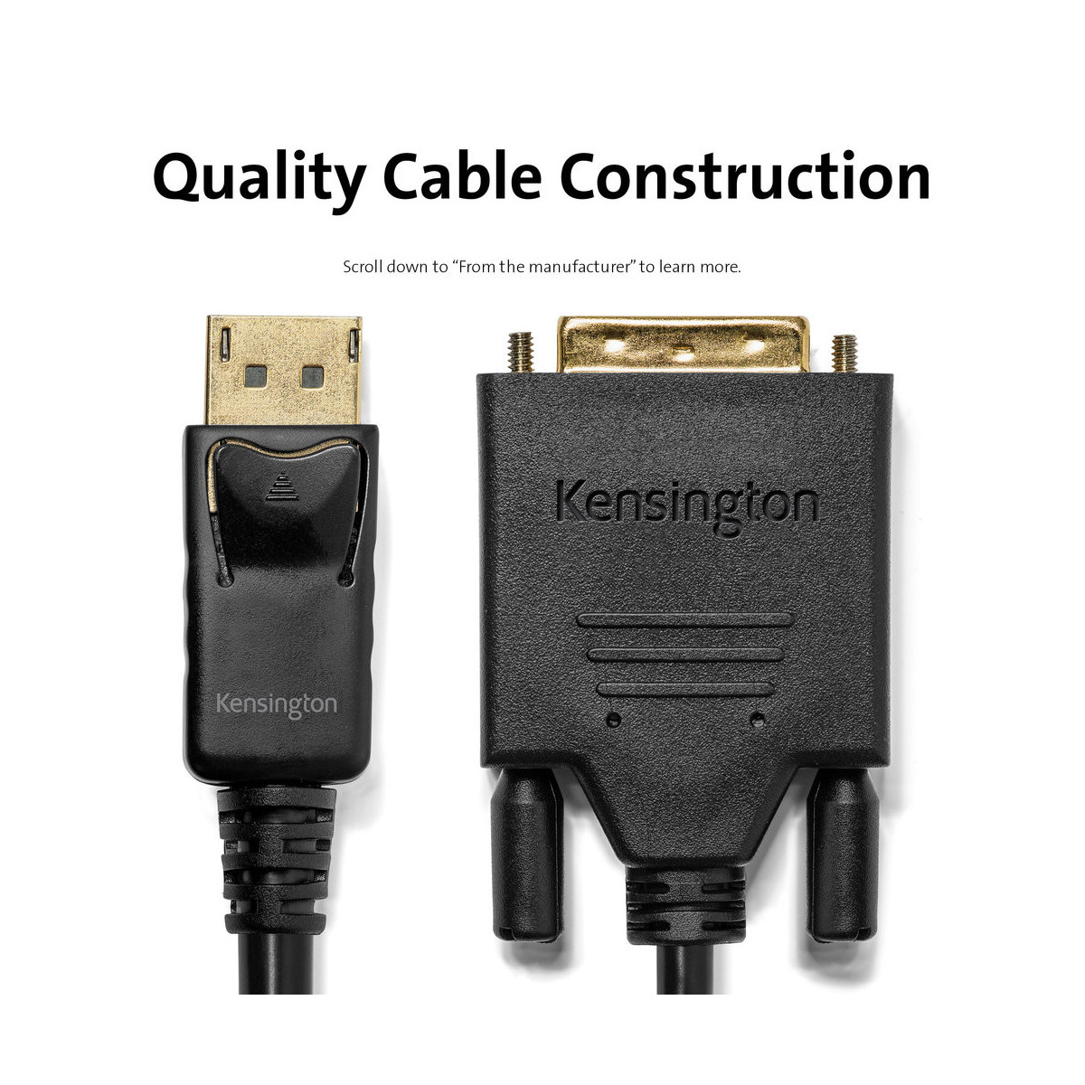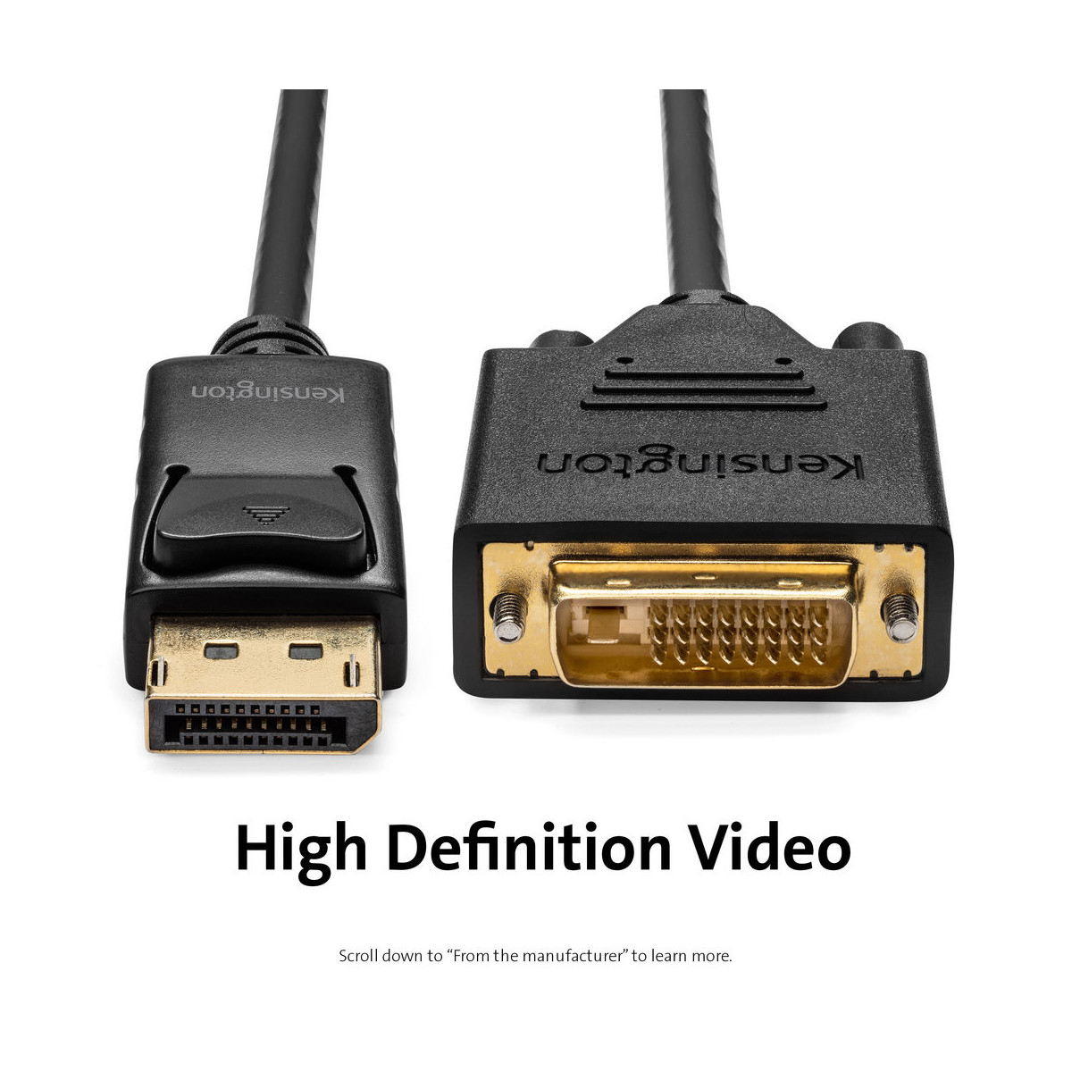Un cavo essenziale per sale conferenze e ambienti educativi, il cavo passivo Kensington da DisplayPort 1.1 (M) a DVI-D (M) trasmette video Full HD dal computer a un monitor o un proiettore. Ideale per collegare desktop estesi o display multipli, oppure home video in streaming e display di gioco. Questo cavo di elevata qualità è stato testato per l'utilizzo con docking station Kensington ed è supportato da una garanzia limitata a vita Kensington. La realizzazione di qualità del cavo comprende conduttori in rame schermati, guaina esterna flessibile e viti ad alette per offrire prestazioni del cavo coerenti e connettività affidabile.