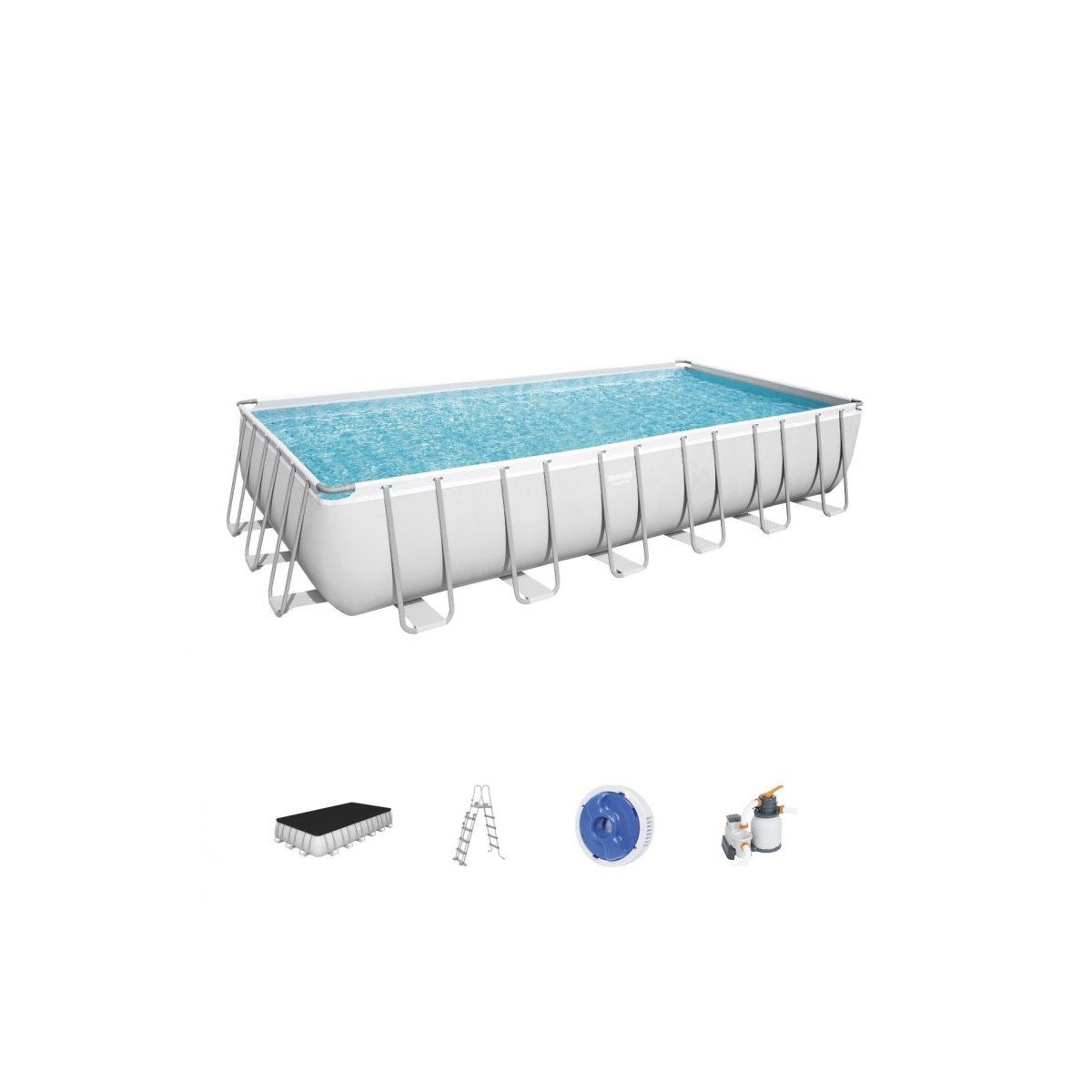 Bestway Power Steel Piscina Fuori Terra Rettangolare 732x366x132 cm, Pompa Filtro a Sabbia, Telo Copertura, Scala e Dosatore