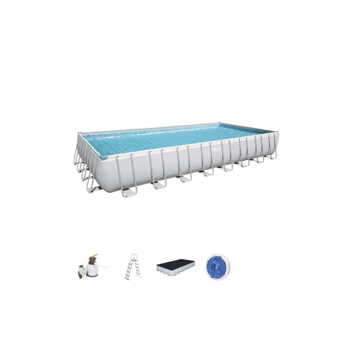 Bestway Power Steel Piscina Fuori Terra Rettangolare 956x488x132cm, Pompa Filtro a Sabbia, Telo Copertura, Scala e Dosatore