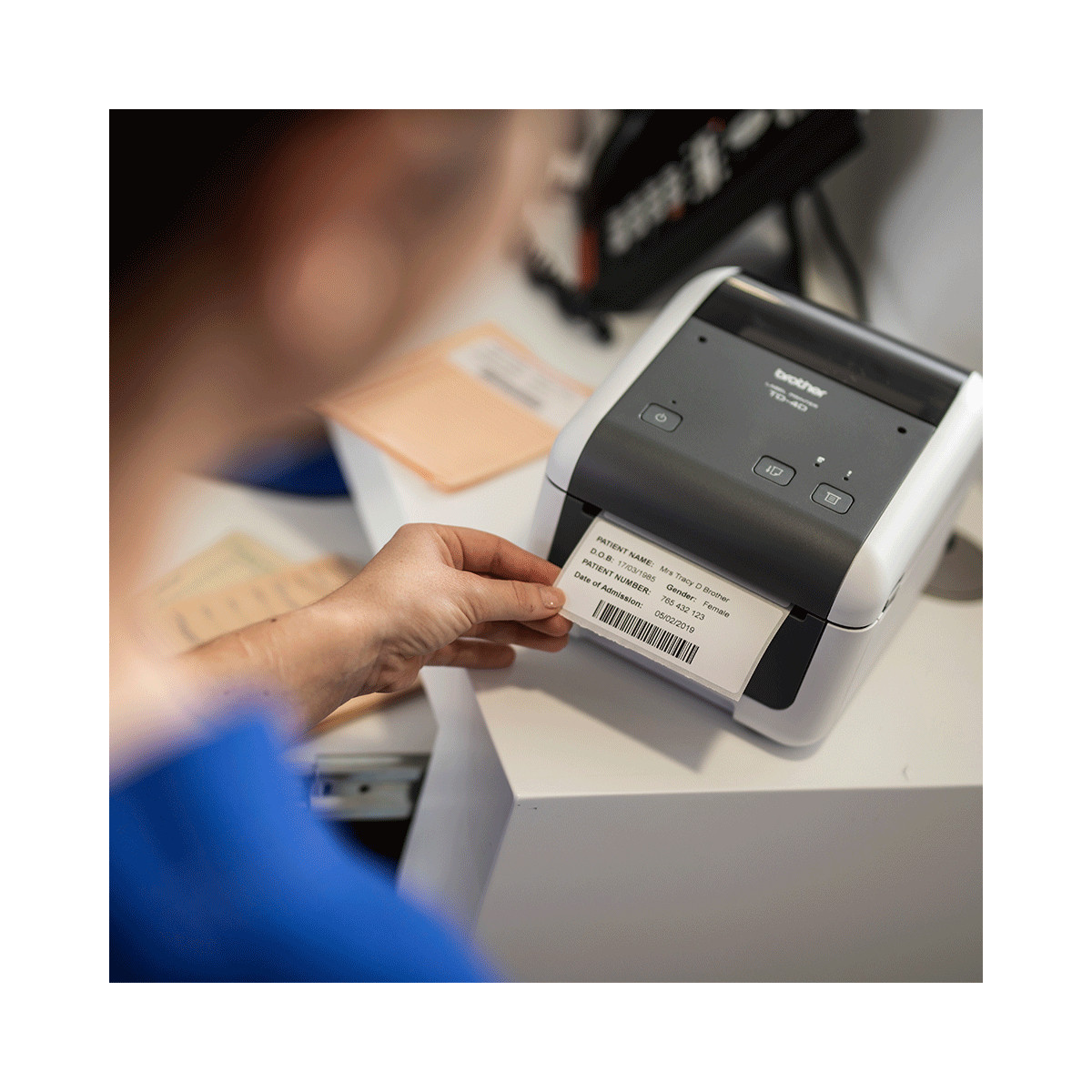 Brother TD-4520DN. Tecnologia di stampa: Termica diretta, Risoluzione massima: 300 x 300 DPI, Velocità di stampa: 152 mm/s. Tecnologia di connessione: Cablato. Colore del prodotto: Grigio, Bianco