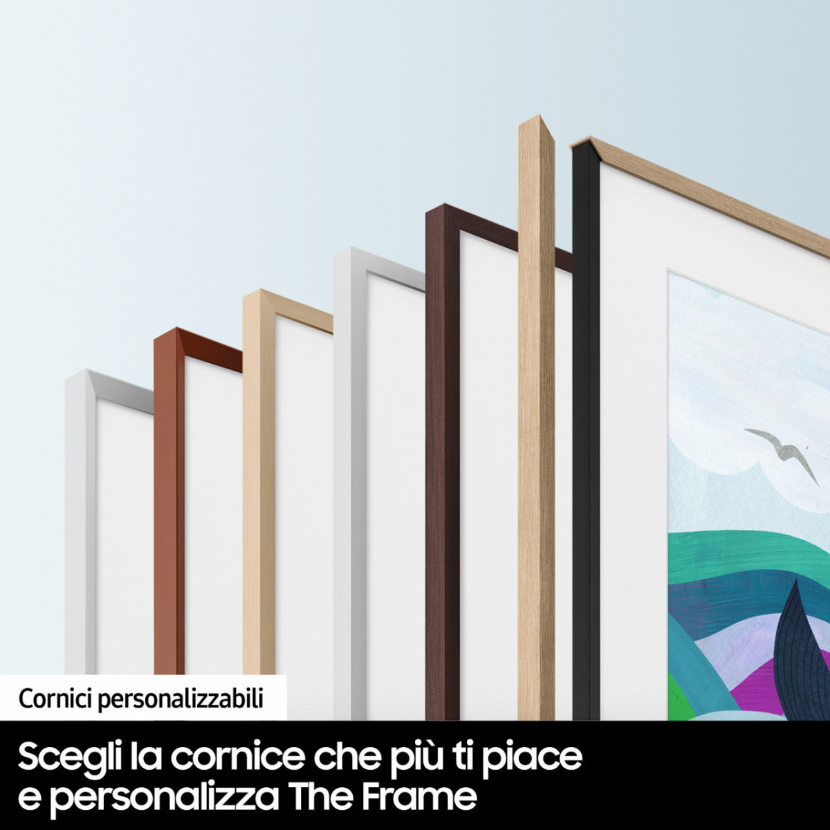 Lo Smart TV The Frame LS03B è molto più di quello che immagini: acceso è un TV fantastico con definizione QLED e un suono coinvolgente; spento diventa un quadro, grazie alle opere d’arte internazionali scaricabili. Design, cornici intercambiabili, emozioni: trasforma la tua casa in una straordinaria esposizione di capolavori. Con i nuovi TV di Samsung la bellezza è l’assoluta protagonista.