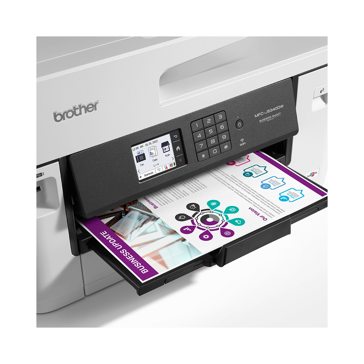 Brother MFC-J5340DW. Tecnologia di stampa: Ad inchiostro, Stampa: Stampa a colori, Risoluzione massima: 1200 x 4800 DPI. Copia: Copia a colori, Risoluzione di copia massima: 600 x 600 DPI. Scansione: Scansione a colori, Risoluzione di scansione ottica: 600 x 600 DPI. Fax: Fax a colori. Funzione duplex: Stampa. Massimo formato carta serie ISO A: A3. Wi-Fi. Stampa diretta. Colore del prodotto: Nero, Bianco