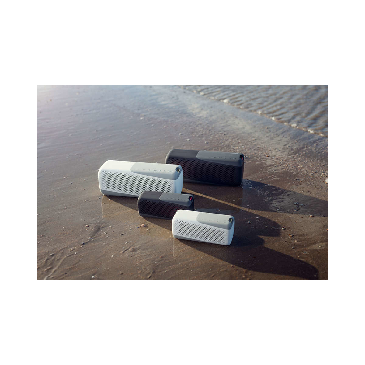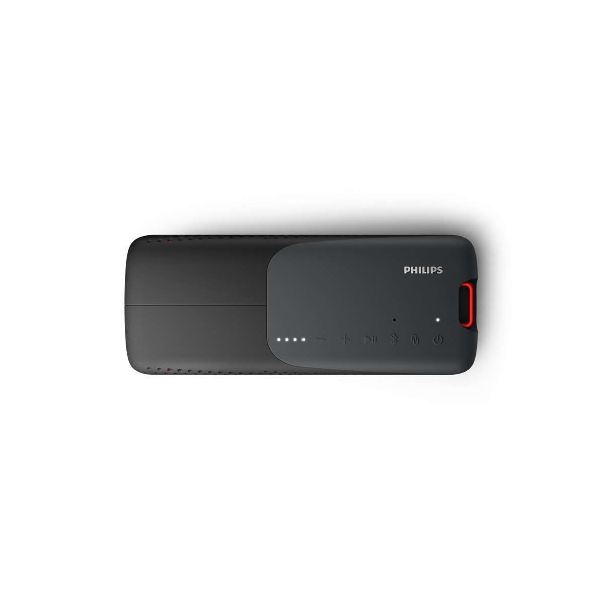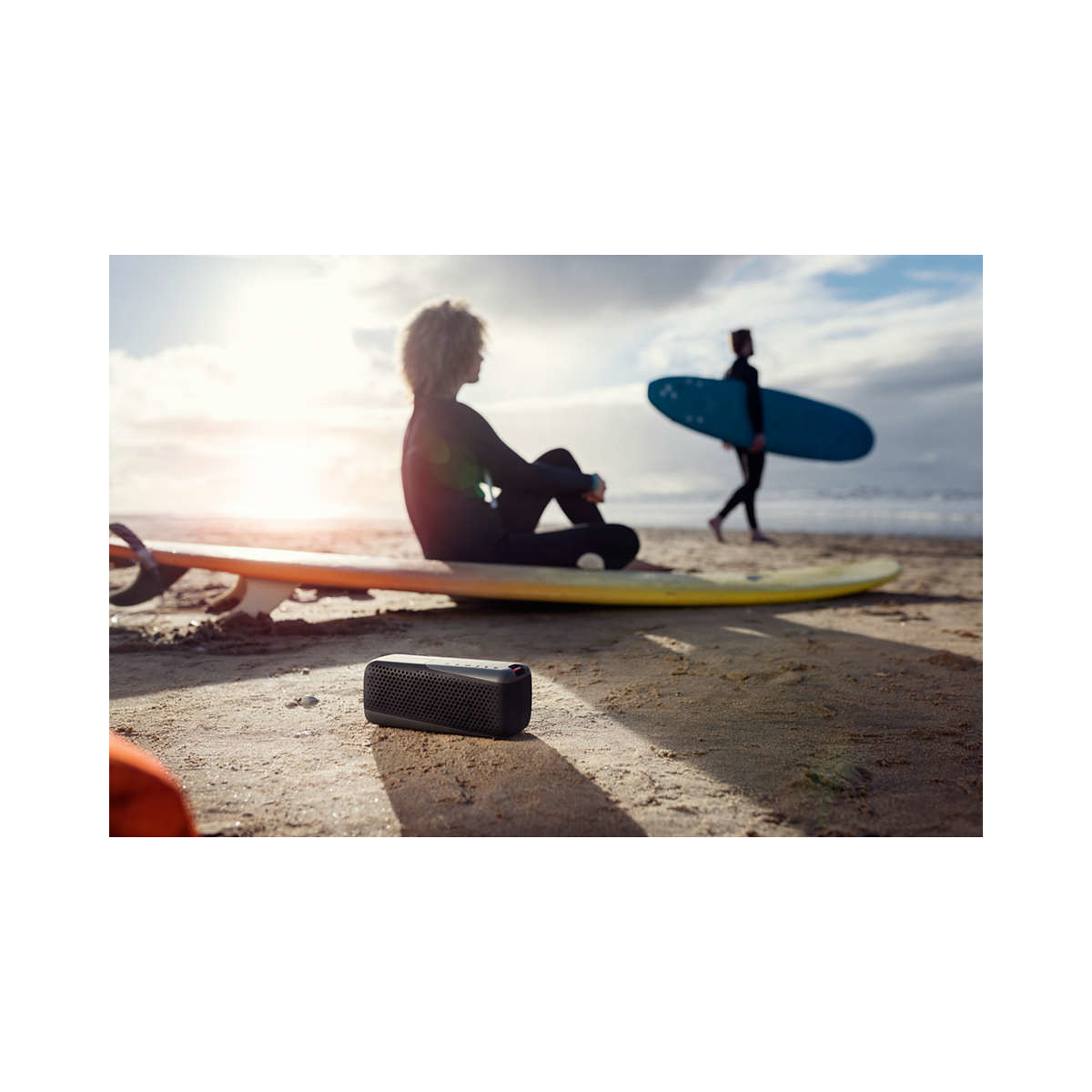 Dalla pista alla spiaggia fino alla piscina: la classificazione IP67 ti consente di portare ovunque questo altoparlante. Il cordino rimovibile è l'ideale per trasportarlo facilmente, mentre con la portata Bluetooth fino a 20 m non perdi mai il ritmo. Anche se il tuo telefono si trova molto distante dall'altoparlante.