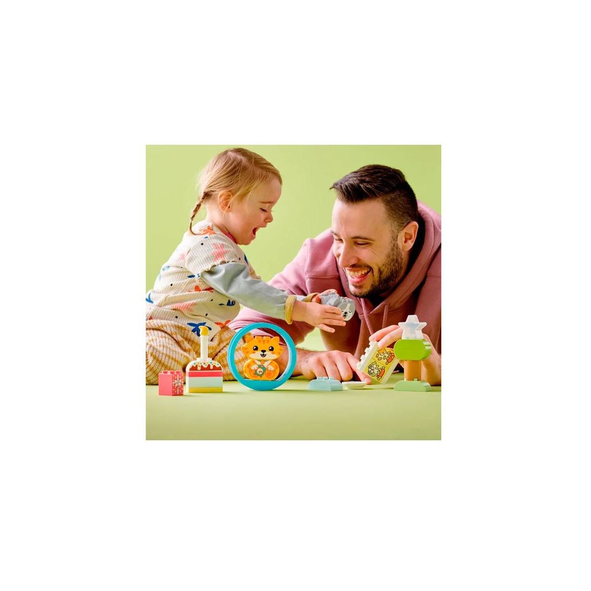 I bambini possono facilmente assemblare i 2 mattoncini LEGO per costruire entrambi gli animali giocattolo. Sarà divertente interagire con i graziosi cuccioli e i loro fantastici accessori, che includono una fetta di torta di compleanno, una ciotola per le crocchette, un pacchetto regalo, un albero con una stella, un cerchio per far giocare i cuccioli giocattolo e altri elementi. La funzione sonora del gatto e del cane giocattolo aumenta le possibilità di imparare attraverso il gioco di ruolo, con rumori che indicano il momento di mangiare, giocare, dormire e altro ancora.