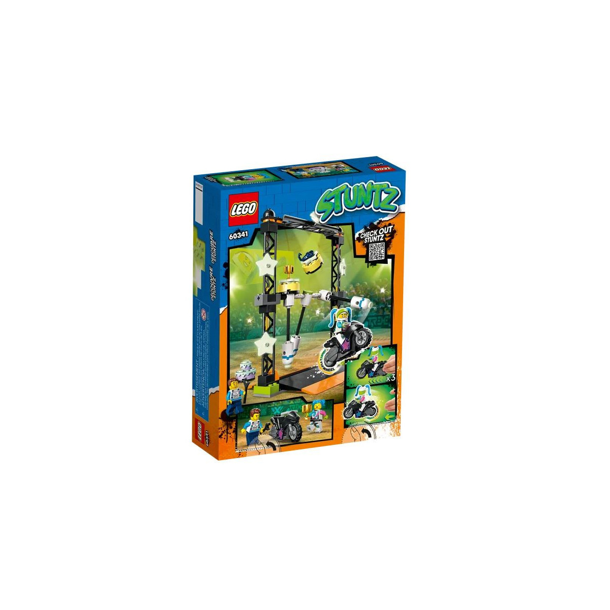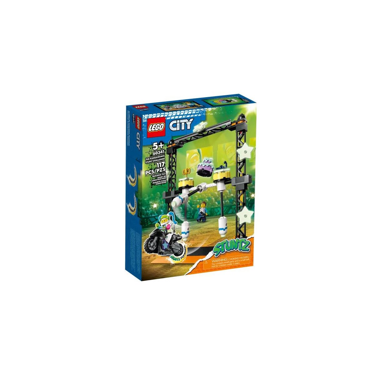 Abbassa le luci per una sfida acrobatica al buio. Ce la farà il nostro eroe a centrare la colonna giusta? Attiva la funzione “carica e vai” per abbattere le colonne con un'impennata della moto giocattolo, e cerca di vincere uno dei premi in palio: uno scorpione, una torta o un trofeo. I giochi per bambini dai 5 anni in su della serie LEGO City Stuntz includono una guida cartacea per la costruzione, semplice da seguire, con cui anche i più piccoli possono realizzare i giocattoli LEGO da soli o in compagnia dei familiari, per una divertente esperienza di costruzione.