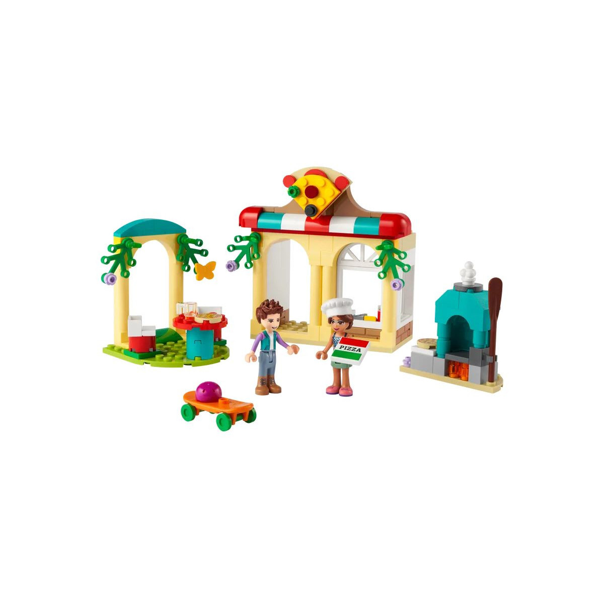 Questo playset LEGO Friends presenta una pizzeria takeaway, dove i bambini possono far finta di prendere ordini e usare la cassa; un'area separata ha dei posti a sedere, in cui si può mettere in scena il gioco di ruolo del ristorante LEGO. I bambini possono preparare il cibo giocattolo nel forno della pizzeria, e servire i loro clienti seduti ai tavoli, mentre si divertono e imparano come gestire gli aspetti sociali della vita. Insieme alle 2 mini bamboline LEGO incluse, sono disponibili diversi accessori divertenti per scatenare ore di narrazione creativa, come: due pizze giocattolo, il formaggio con la grattugia, una bottiglia di salsa, un cappello da chef, una pala per la pizza, un casco e uno skateboard.