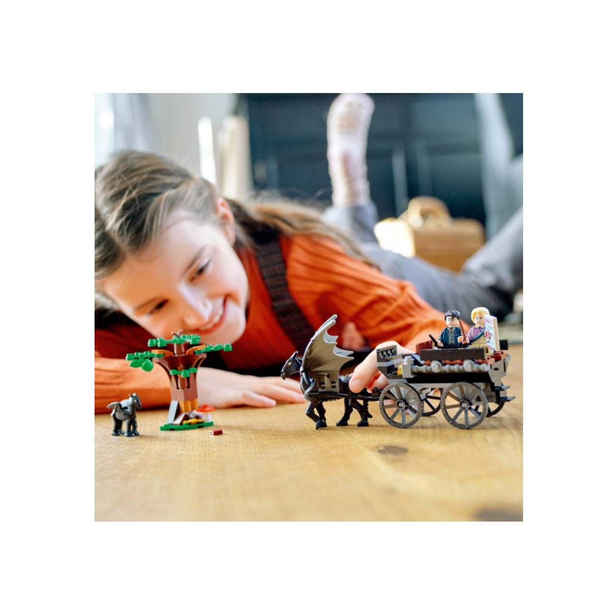 Costruisci ed esponi la carrozza trainata dal Thestral alato. Il set viene fornito con elementi caratteristici del film, come la carne, la mela e una copia del famigerato giornale il Cavillo. Questo gioco per bambini dai 7 anni in su offre un’esperienza di costruzione coinvolgente grazie all'app gratuita LEGO Building Instructions, con cui i bambini possono visualizzare, ingrandire e ruotare il modellino mentre costruiscono. Un'idea regalo perfetta per tutti i fan appassionati del film Harry Potter e l'Ordine della Fenice e amanti della magia di Hogwarts.