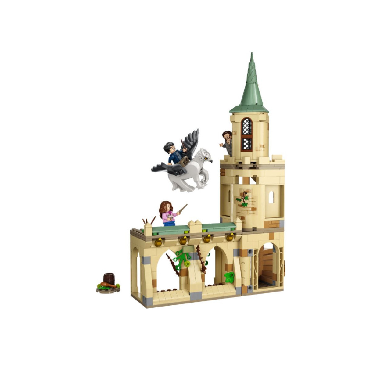 Vola sulla torre giocattolo del castello di Hogwarts e fuggi verso la salvezza a bordo dell’Ippogrifo Fierobecco, insieme ai 3 personaggi Harry Potter, Hermione Granger e Sirius Black. Sali a bordo di Firebolt, la famosa scopa di Harry Potter, pronto per la prossima avventura ricca di magia!