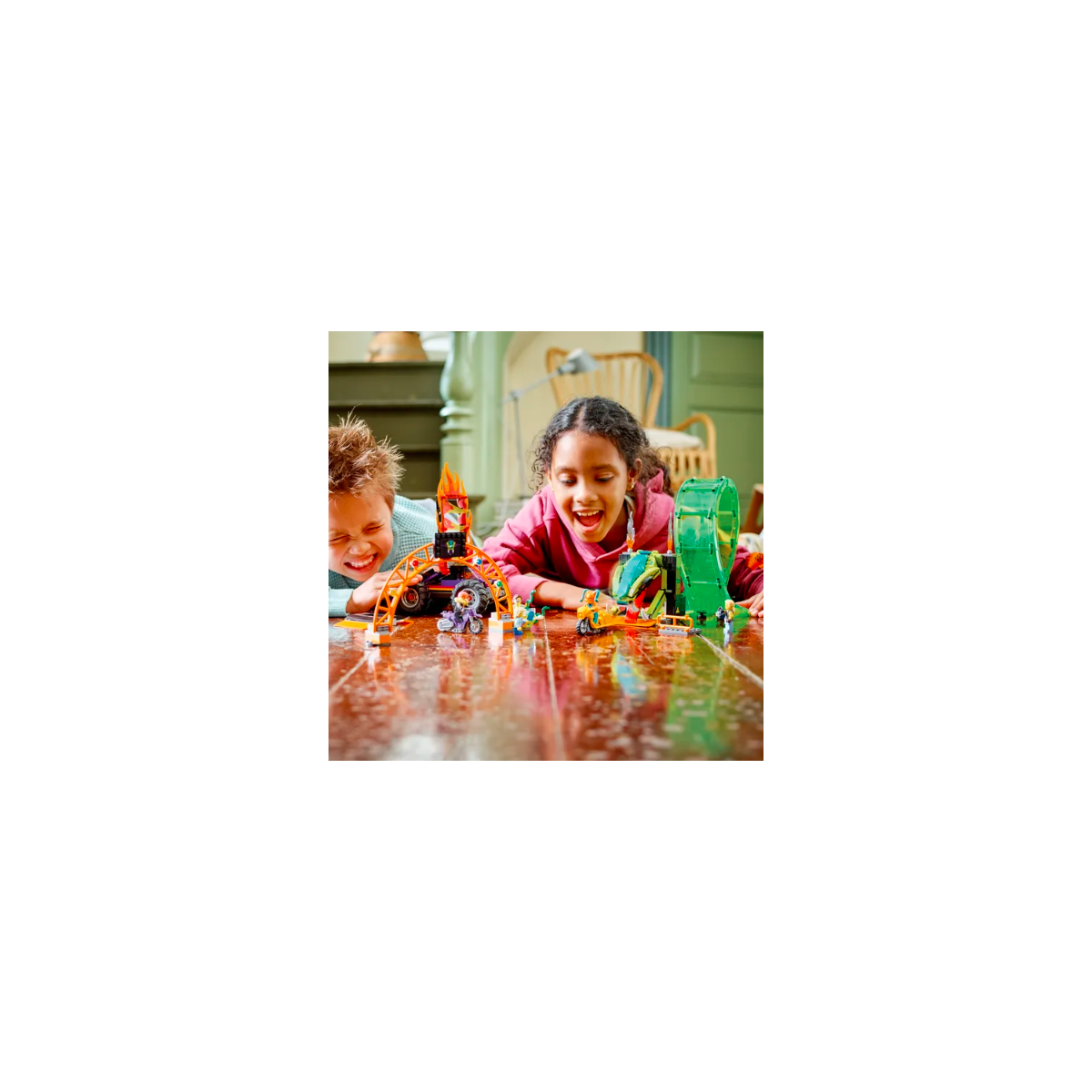 Questo set LEGO City Stuntz porta i giovani piloti al centro dell'azione, grazie a veicoli e strutture realistiche e ricche di funzioni: l'ideale per ispirare il gioco di ruolo. Una fantastica idea regalo per i bambini e le bambine dai 7 anni in su, appassionati di monster truck e moto giocattolo.