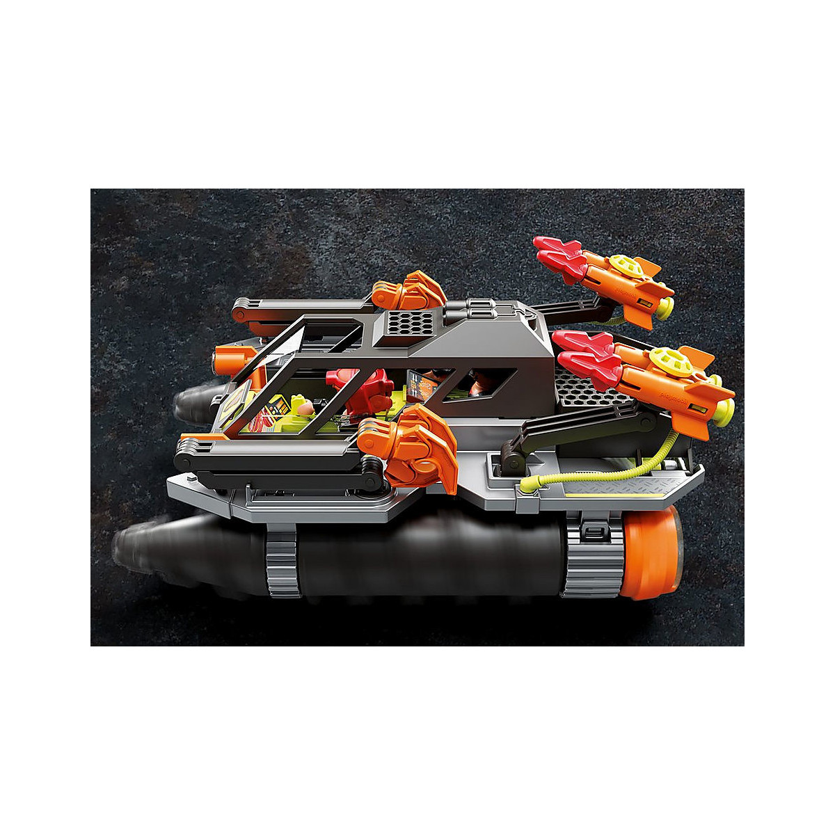 Con una potente trivella demolitrice, i cattivi Ludmilla e Ralph della Comet Corporation si fanno strada attraverso la Dino Mine. Le punte perforatrici, i due cannoni funzionanti e i bracci di presa flessibili offrono grande varietà di gioco. Il divertimento alla ricerca delle pietre energetiche e della fonte di lava è assicurato.