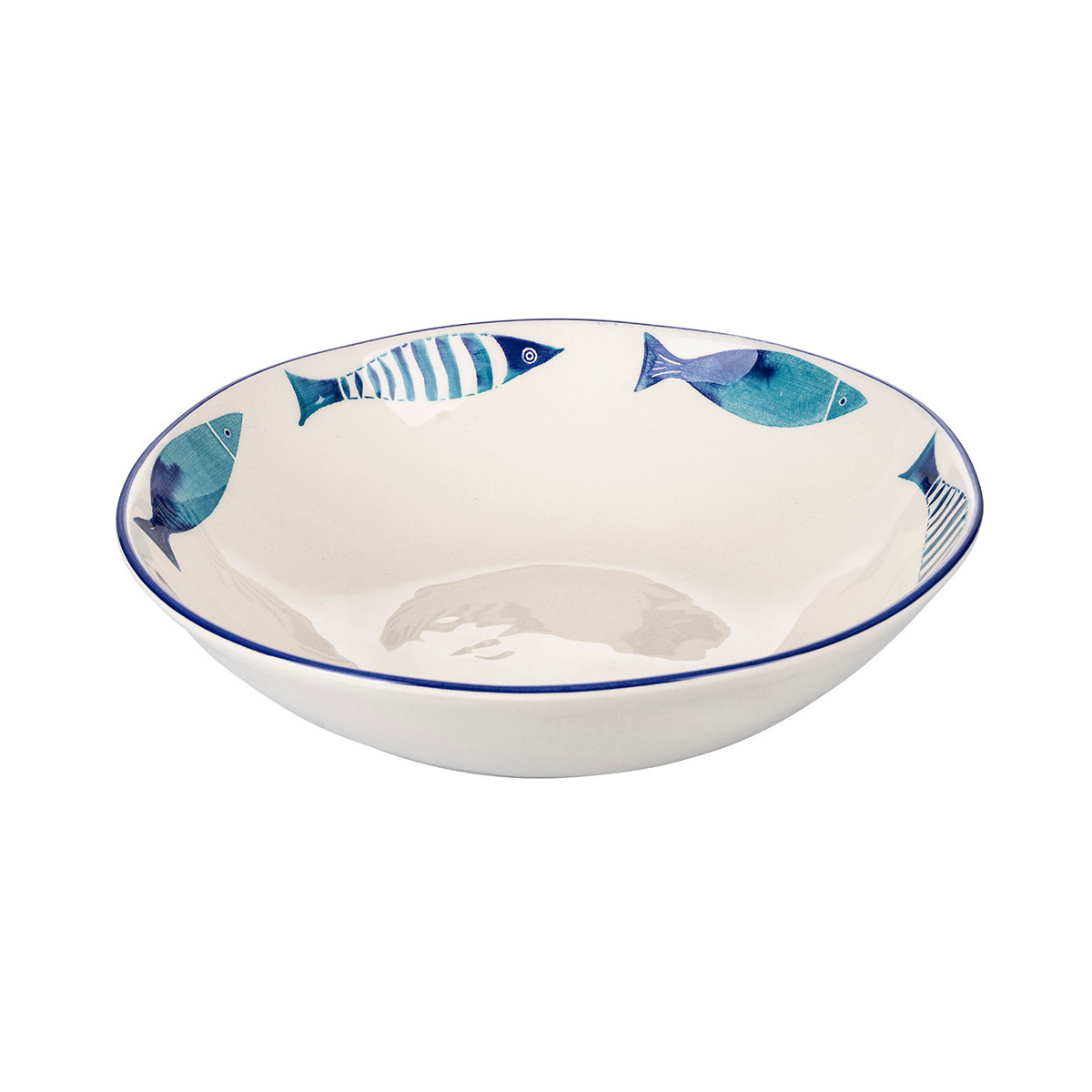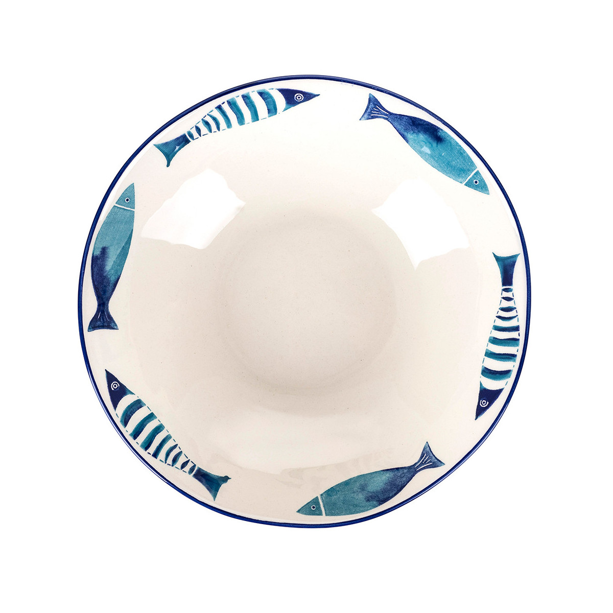In pieno stile coastal, la collezione Kos propone una linea di complementi che decorano la tavola all insegna di un piacevole sapore di mare e di estate: i decori marini sono i protagonisti e sembrano nuotare sulle superfici in dolomite creando un piacevole contrasto con le sfumature del blu e dell azzurro protagoniste della collezione.