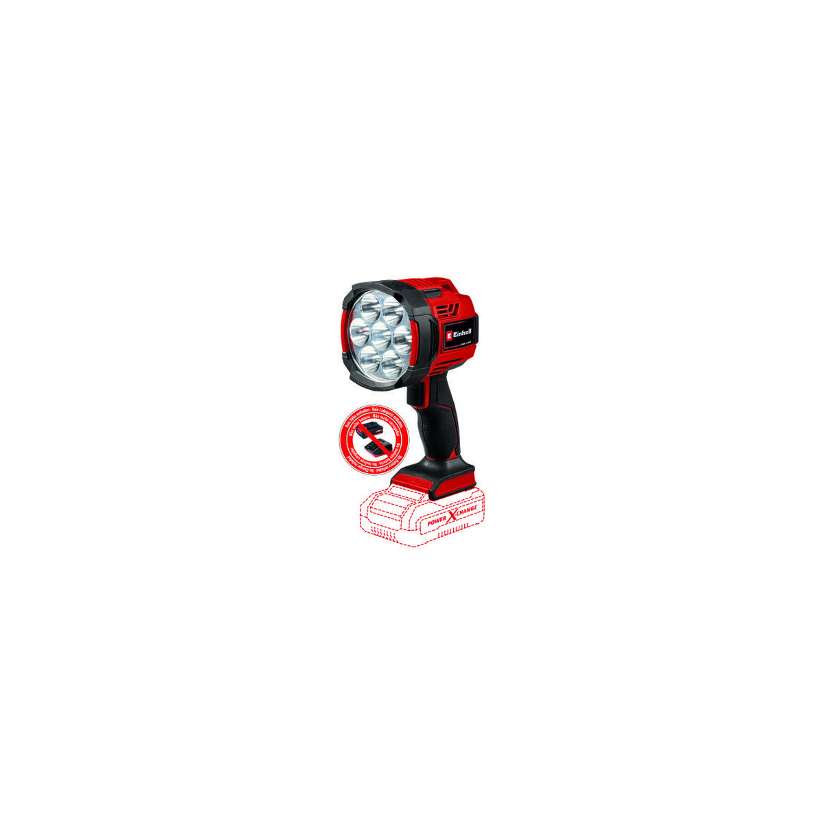 La torcia a batterie Einhell TE-CL 18/2500 LiAC - Solo da 2500 Lumen porta la giusta quantità di luce negli spazi oscuri. Essendo un componente della famiglia Power X-Change è compatibile con tutte le batterie agli ioni di litio di questa serie. La torcia a batteria è utile non solo per i luoghi poco illuminati come la cantina, il cantiere, la soffitta o in angoli remoti dell'officina. Questa maneggevole torcia a batteria, offre perfetta visibilità anche quando manca la corrente o in campeggio, quando si circola di notte, durante le passeggiate dopo il tramonto e durante attività all'aperto di altro tipo, quando è imprescindibile poter disporre di una fonte di illuminazione indipendente dalla corrente elettrica. Grazie alle sette durevoli lampade LED che totalizzano 2.500 Lumen di potenza e temperatura di luce da 6.500 K(elvin), questa lampada a batterie non limita la propria utilità solo alla cantina, ma è anche una robusta lampada resistente agli urti, comparabile a una lampada alogena. Due livelli di intensità luminosa garantiscono l'illuminazione ideale. Possibilità di fissaggio ad un cavalletto grazie al filetto da 1/4" di cui è dotato. Lampada maneggevole e versatile grazie al corpo sottile e leggero e all'impugnatura ergonomica con Softgrip. Nella fornitura non sono incluse batteria e caricabatterie della serie Power X-Change che potranno essere acquistati separatamente, ad esempio con il pratico Starter Kit.
