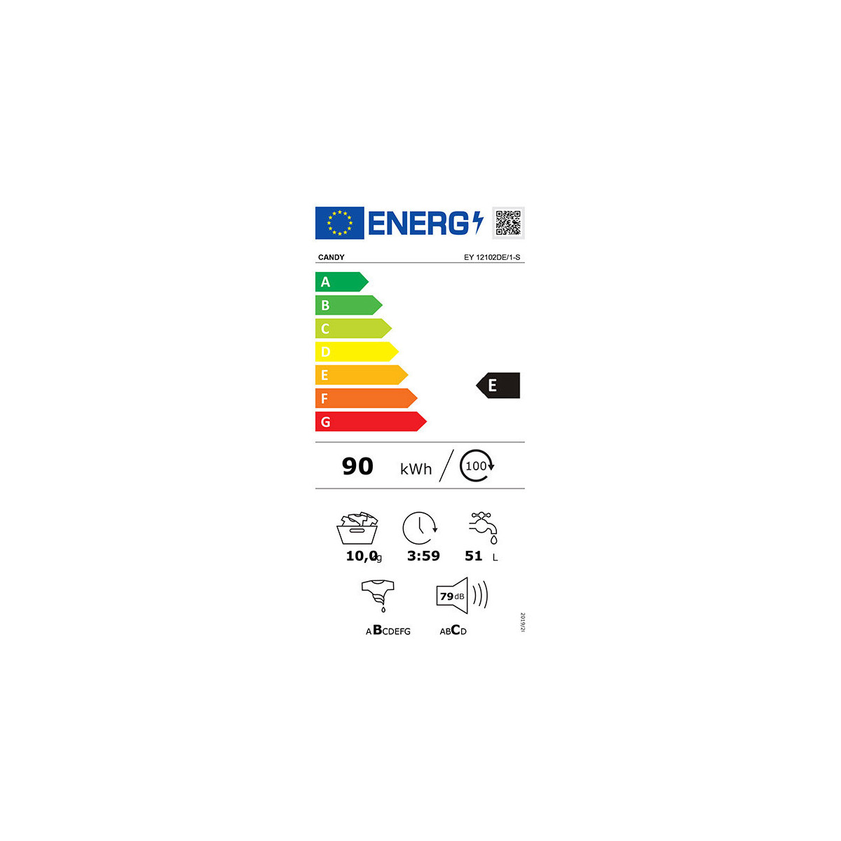 Candy EY 12102DE/1-S - Lavatrice a Carica Frontale, 10 Kg, 1200 Giri, Classe E