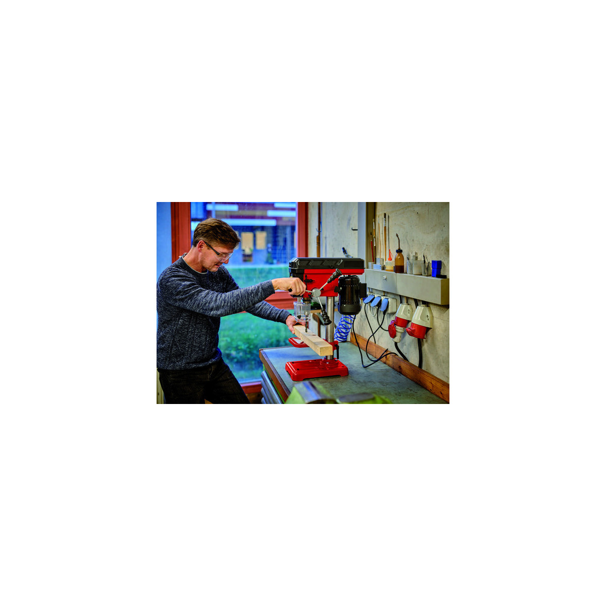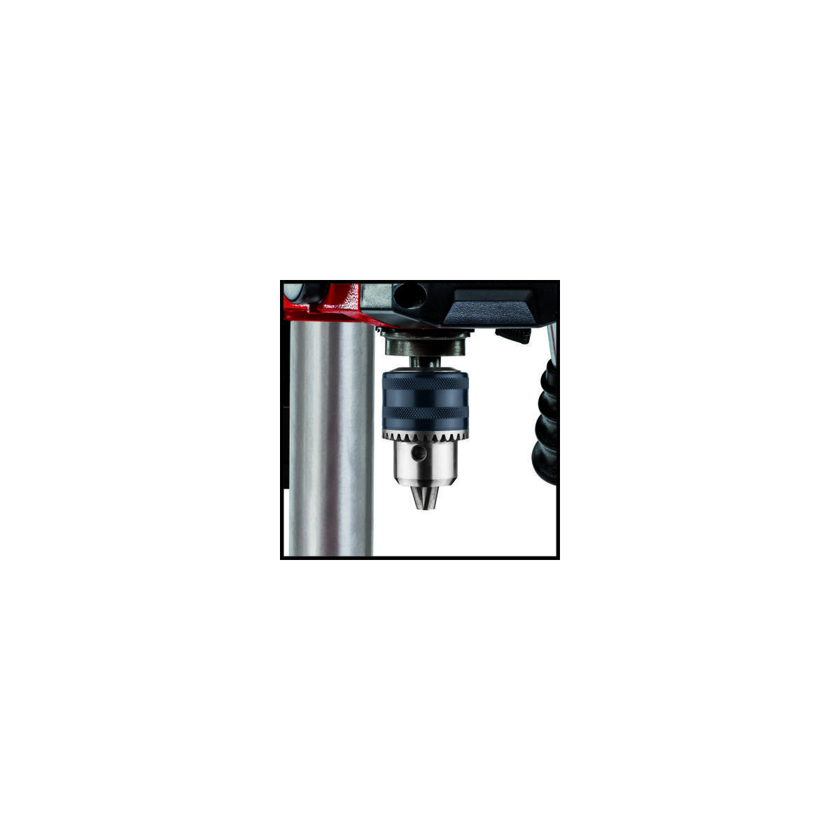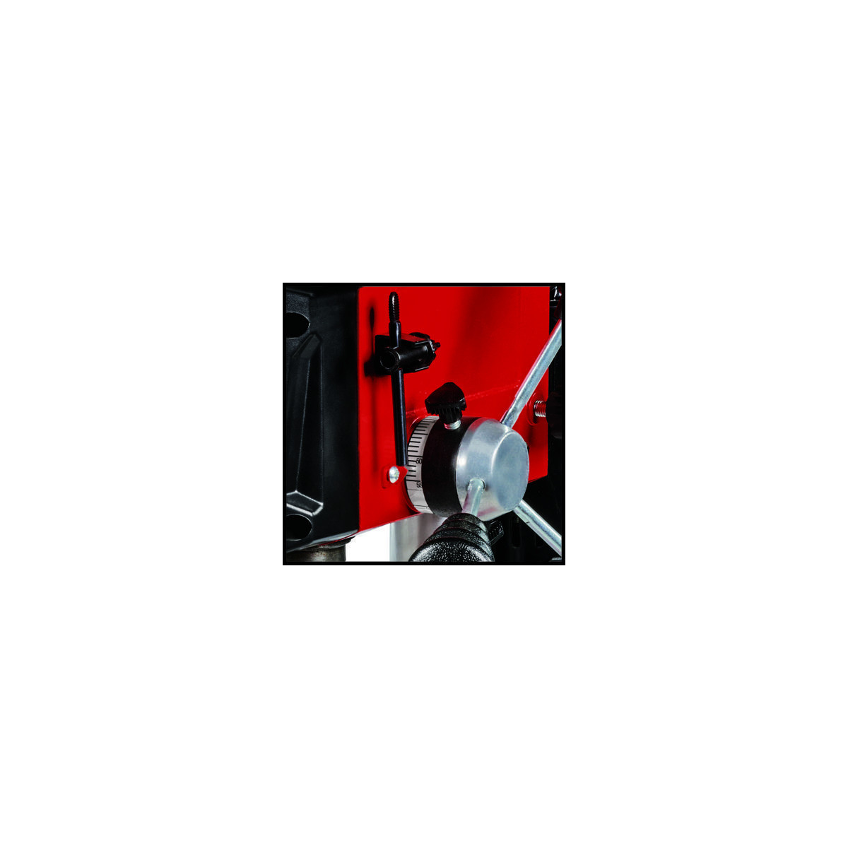 Il trapano a colonna TC-BD 450 di Einhelll è una macchina pratica e precisa per esigenze particolari: la sporgenza ampia di 104 mm consente di forare in modo affidabile e con elevata precisione grandi pezzi in legno o metallo. Grazie ai 450 watt di potenza e ai 5 livelli di velocità da 600 a 2650 rotazioni al minuto, è possibile praticare fori precisi e specifici in base al materiale. Il trapano a colonna può quindi essere utilizzato con un numero di giri alto o basso, perciò si adatta a materiali duri come il metallo, o a materiali morbidi come il legno. È possibile eseguire fori precisi grazie all'arresto di profondità regolabile. La profondità di perforazione massima è di 50 mm. Il trapano a colonna ha un robusto mandrino a cremagliera e un attacco MK2, il che significa che si possono utilizzare coni morse e le punte più comuni con diametro da 1,5 mm a 13 mm. Il mandrino di foratura con cuscinetti a sfera assicura un funzionamento duraturo e facile. Il trapano a colonna è regolabile in modo variabile grazie alla regolazione continua dell'altezza del piano a forare. Inoltre, il piano a forare può essere ruotato fino a 90° e inclinato fino a 45°. Il leveraggio a croce gommato a tre bracci permette di premere con precisione senza bisogno di forza grazie all'effetto leva. La protezione antitrucioli ripiegabile assicura la sicurezza nell'uso e l'interruttore di accensione/spegnimento con azionamento a tensione zero impedisce che la macchina si riavvii involontariamente dopo un'interruzione di corrente.