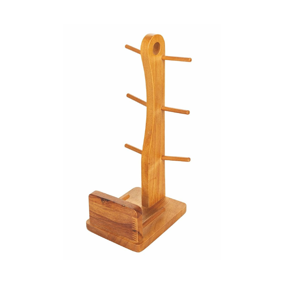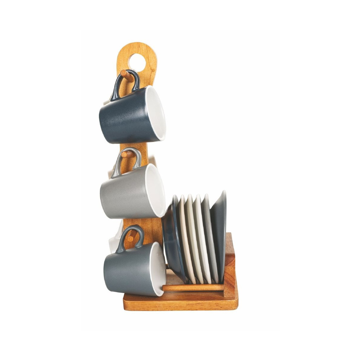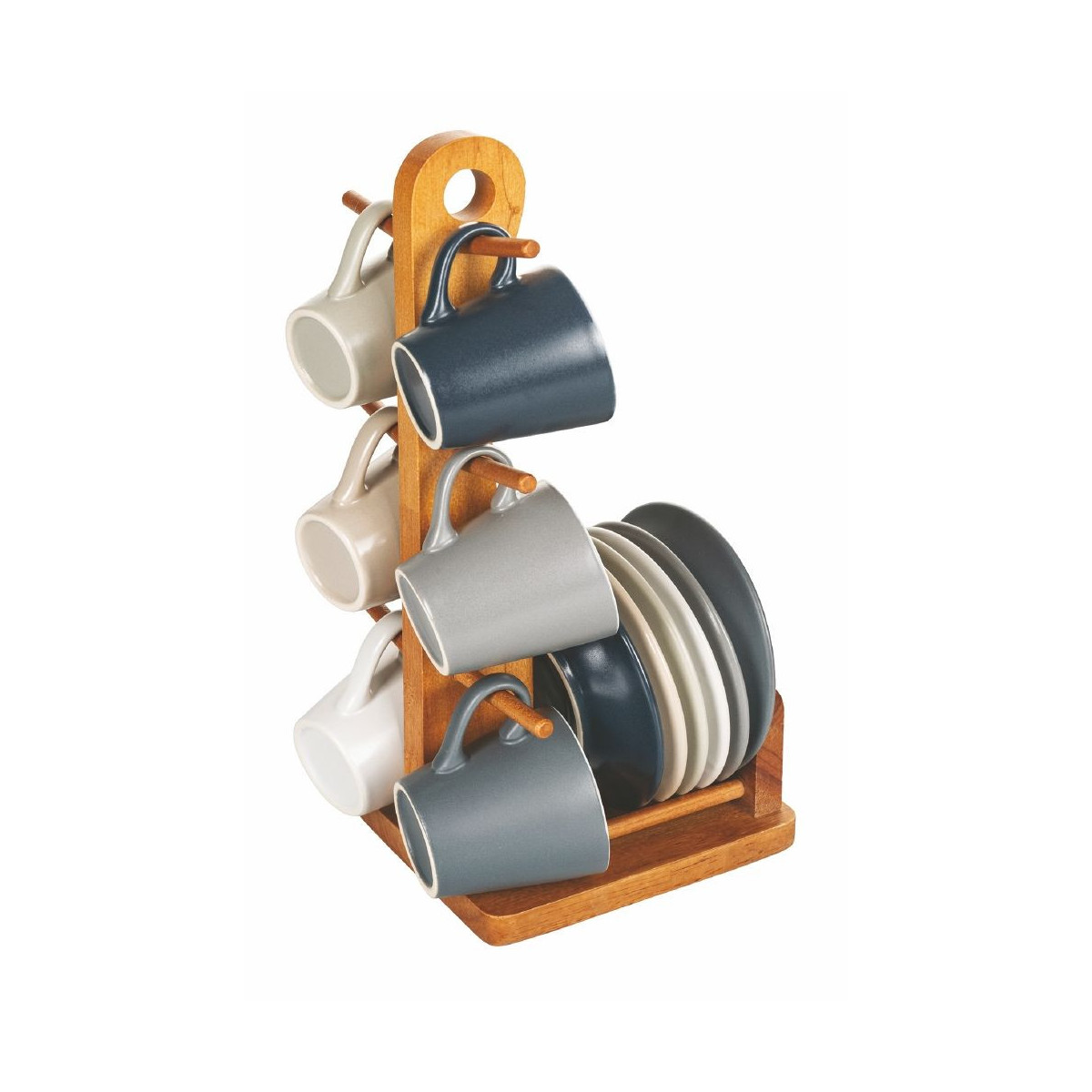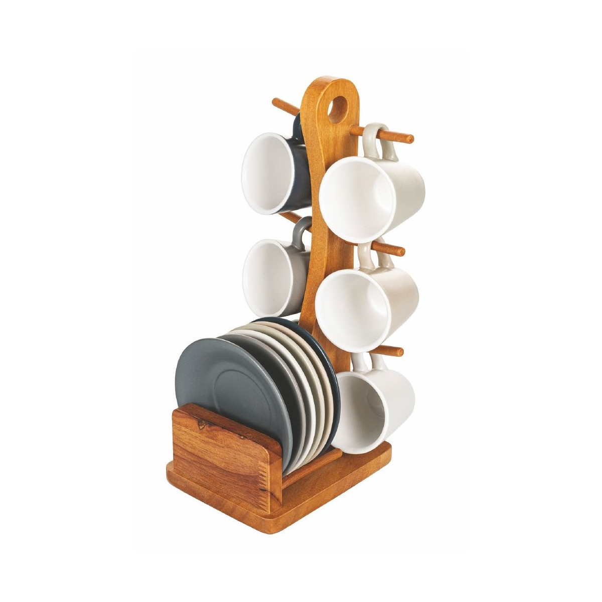 Stand in legno con base porta piattini e asta con ganci porta tazzine