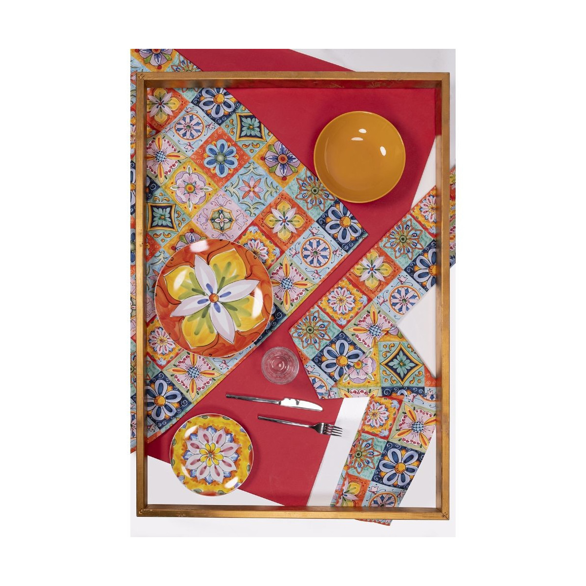 Un mosaico infinito di forme e colori, fiori delicati come le cromie che si alternano sui complementi di questa linea. Il risultato è un coloratissimo grande quadro pieno di giochi di colori, di forme e fantasie.