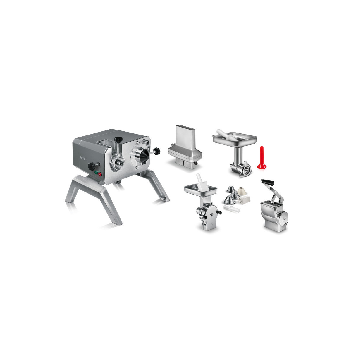 Tre Spade 'TOOLLIO', Kit Completo: Corpo Macchina Grigio Trifase +Tritacarne+Grattuggia+Tagliaverdure+Inteneritrice