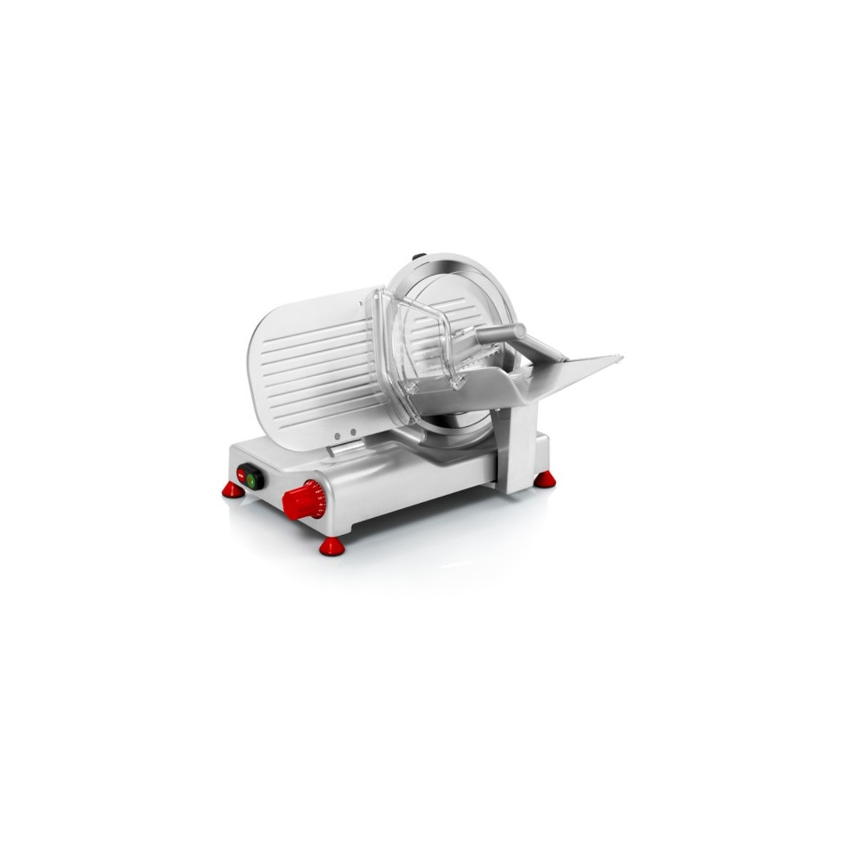 Affettatrice professionale, con struttura in alluminio, ideale per affettare salumi, carni, formaggi, verdure e pane.