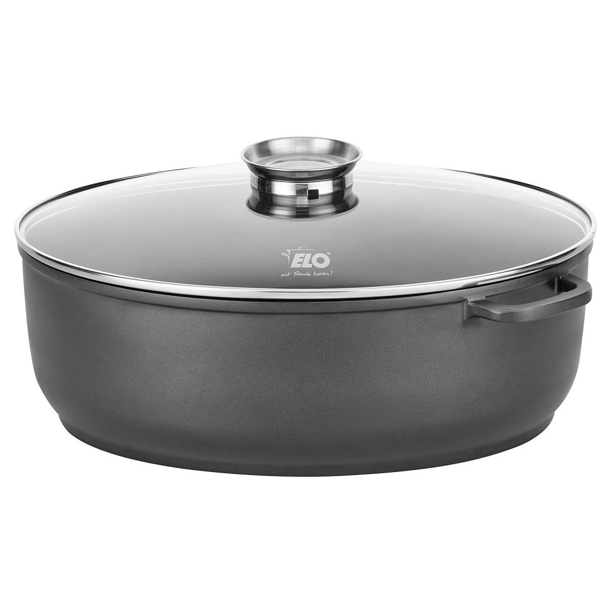 Teglia in fusione di alluminio di alta qualità, rivestimento antiaderente nero a 2 strati di alta qualità (ILAG Basic) all'interno, rivestimento in PTFE nero all'esterno. Spessore parete circa 2,4 mm | Spessore fondo circa 5,0 mm. Piano di cottura e arrosto extra large, di forma profonda, ideale anche per rosolare. La distribuzione uniforme del calore fino al bordo consente di risparmiare tempo ed energia. Il coperchio in vetro ha un bordo in acciaio inossidabile resistente agli urti. Lavabile in lavastoviglie | Stabile in forno con coperchio fino a 180°C, senza coperchio fino a 240°C | Adatto per induzione. 7 l, (LxPxA): 38x25x7 cm. Peso: circa 2,64 kg