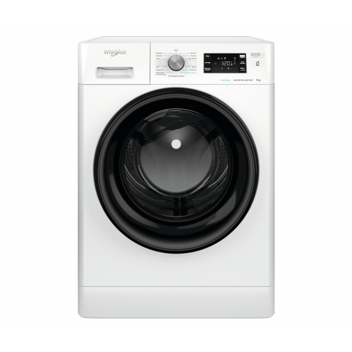 Whirlpool FFB R649 BV IT. Tipo di carica: Caricamento frontale. Capacità cestello: 9 kg, Classe di efficienza della centrifuga: B, Silenziosità (centrifuga): 78 dB, Velocità di centrifuga massima: 1400 Giri/min. Colore del prodotto: Bianco. Larghezza: 595 mm, Profondità: 630 mm, Altezza: 850 mm. Classe efficienza energetica: A