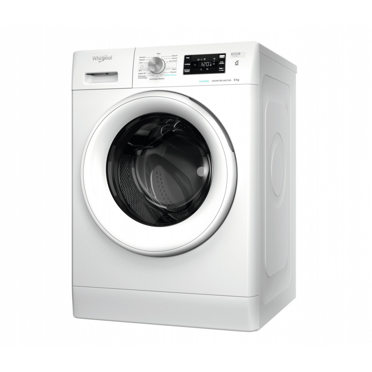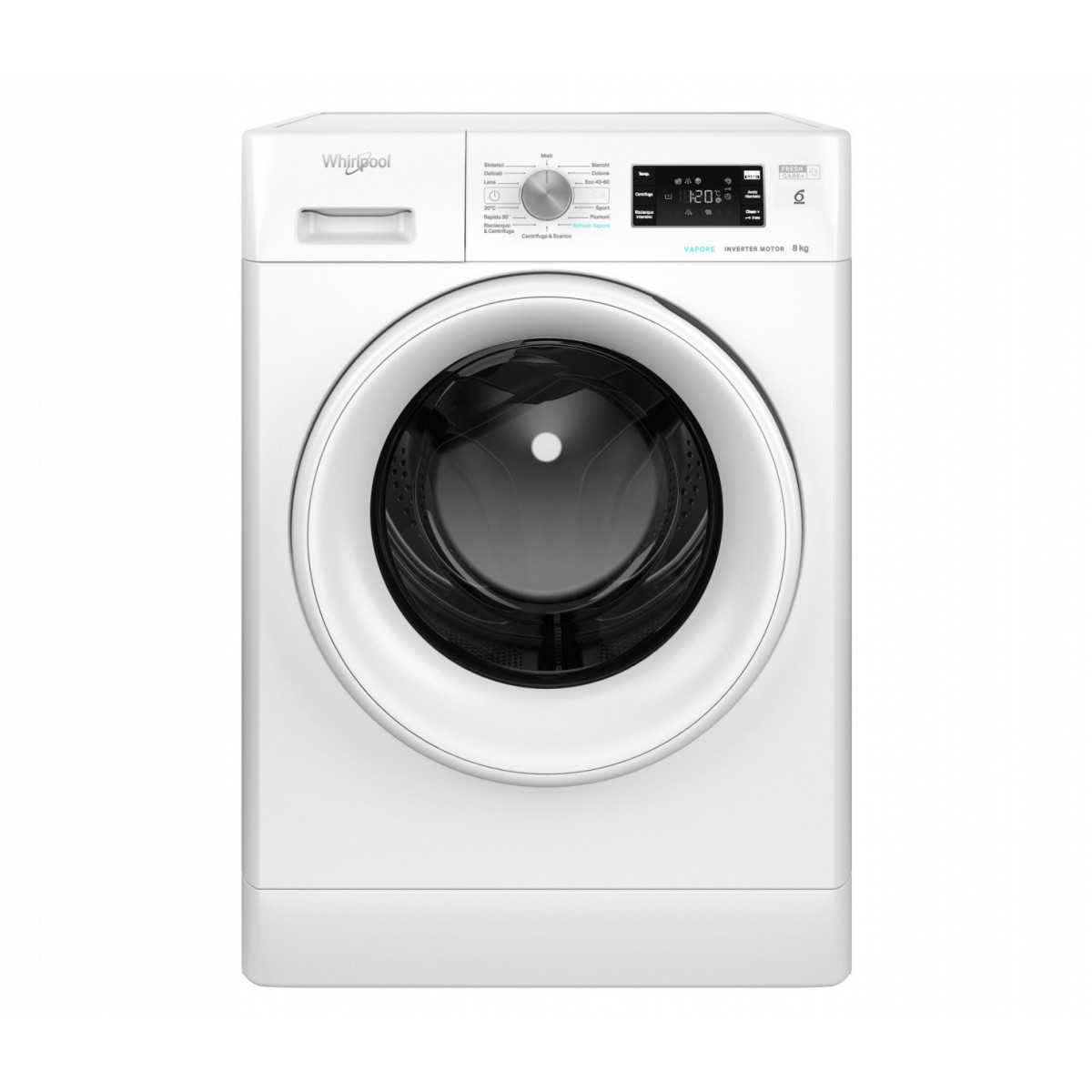 Whirlpool FFB D85 V IT. Tipo di carica: Caricamento frontale. Capacità cestello: 8 kg, Classe di efficienza della centrifuga: B, Silenziosità (centrifuga): 79 dB, Velocità di centrifuga massima: 1200 Giri/min. Colore del prodotto: Bianco. Larghezza: 595 mm, Profondità: 630 mm, Altezza: 845 mm. Classe efficienza energetica: B