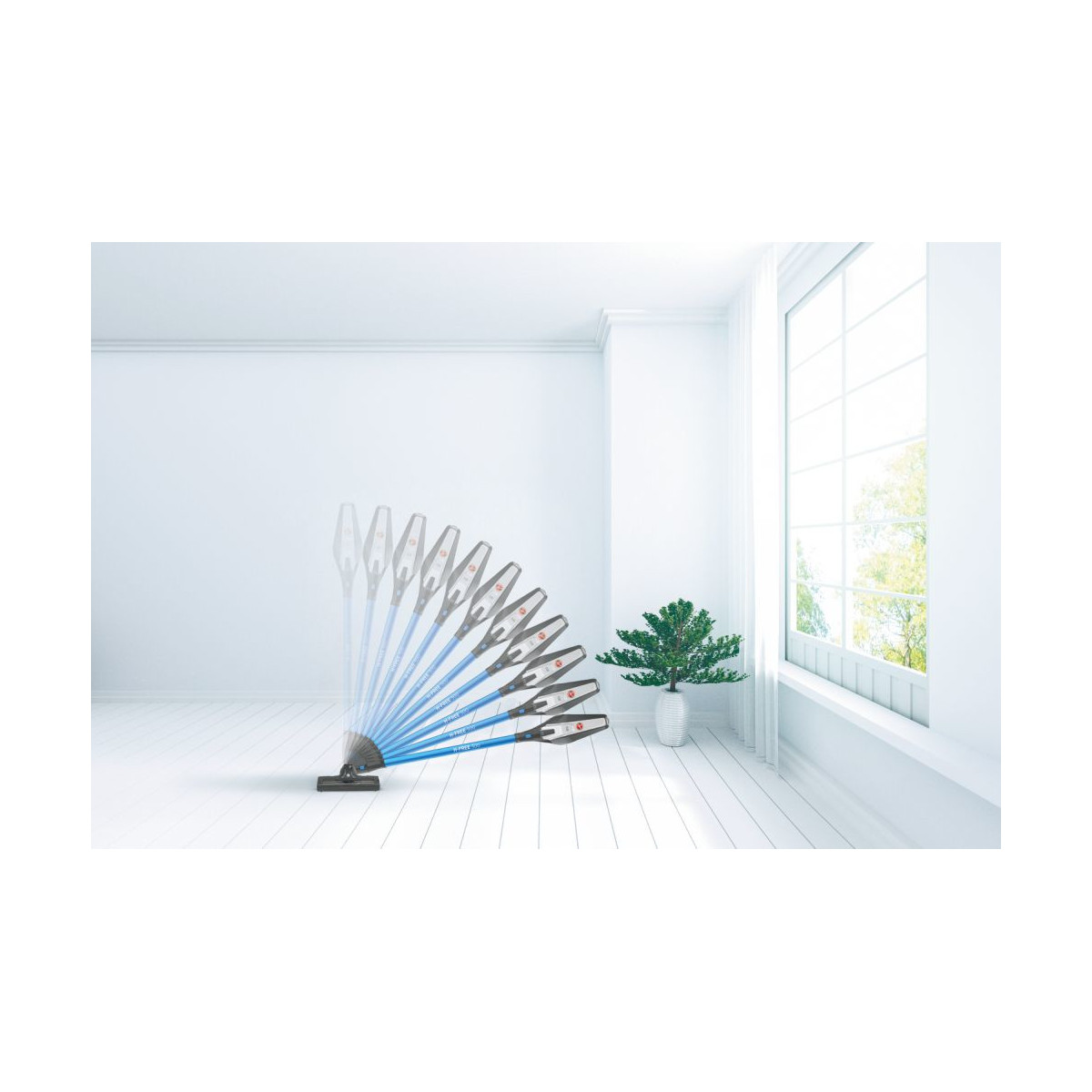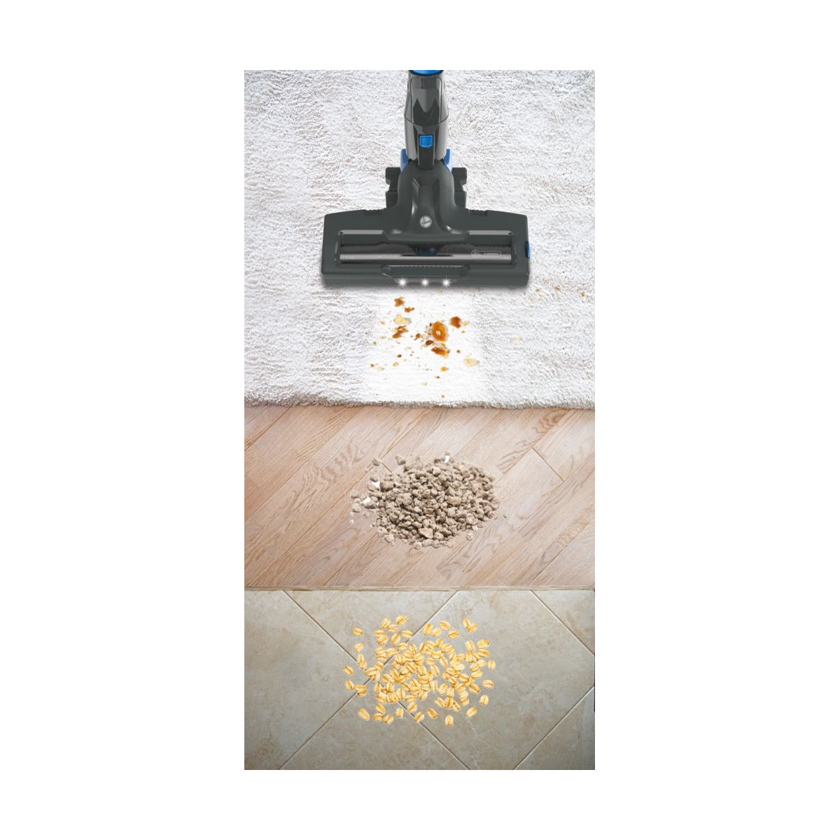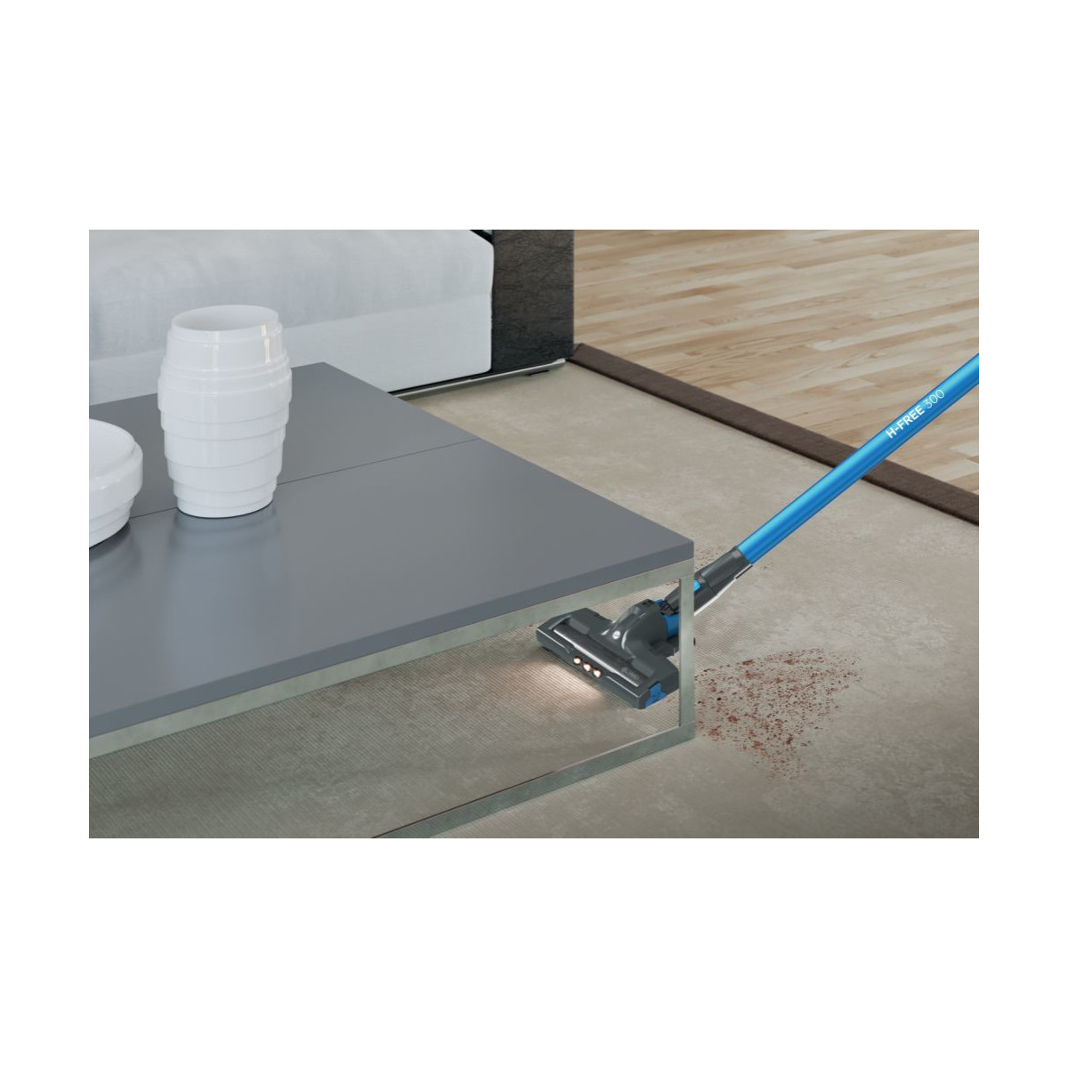 H-FREE 300 è dotata del motore Direct Impulse, che garantisce prestazioni efficaci nell'aspirazione di polvere e briciole. La doppia luce LED rileva polvere e sporco depositati su pavimenti e superfici per una pulizia della casa completa e profonda.