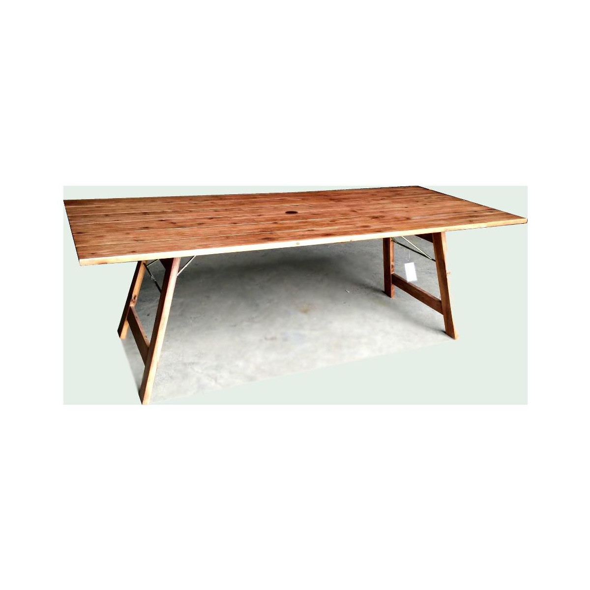 Forma rettangolare. 10 posti a sedere. Foro per ombrellone non presente. Piano realizzato in legno. Struttura realizzata in legno. Gambe pieghevoli per agevolare il trasporto e il ricovero. Non include accessori. Non necessita di assemblaggio. Indicazioni per la manutenzione incluse