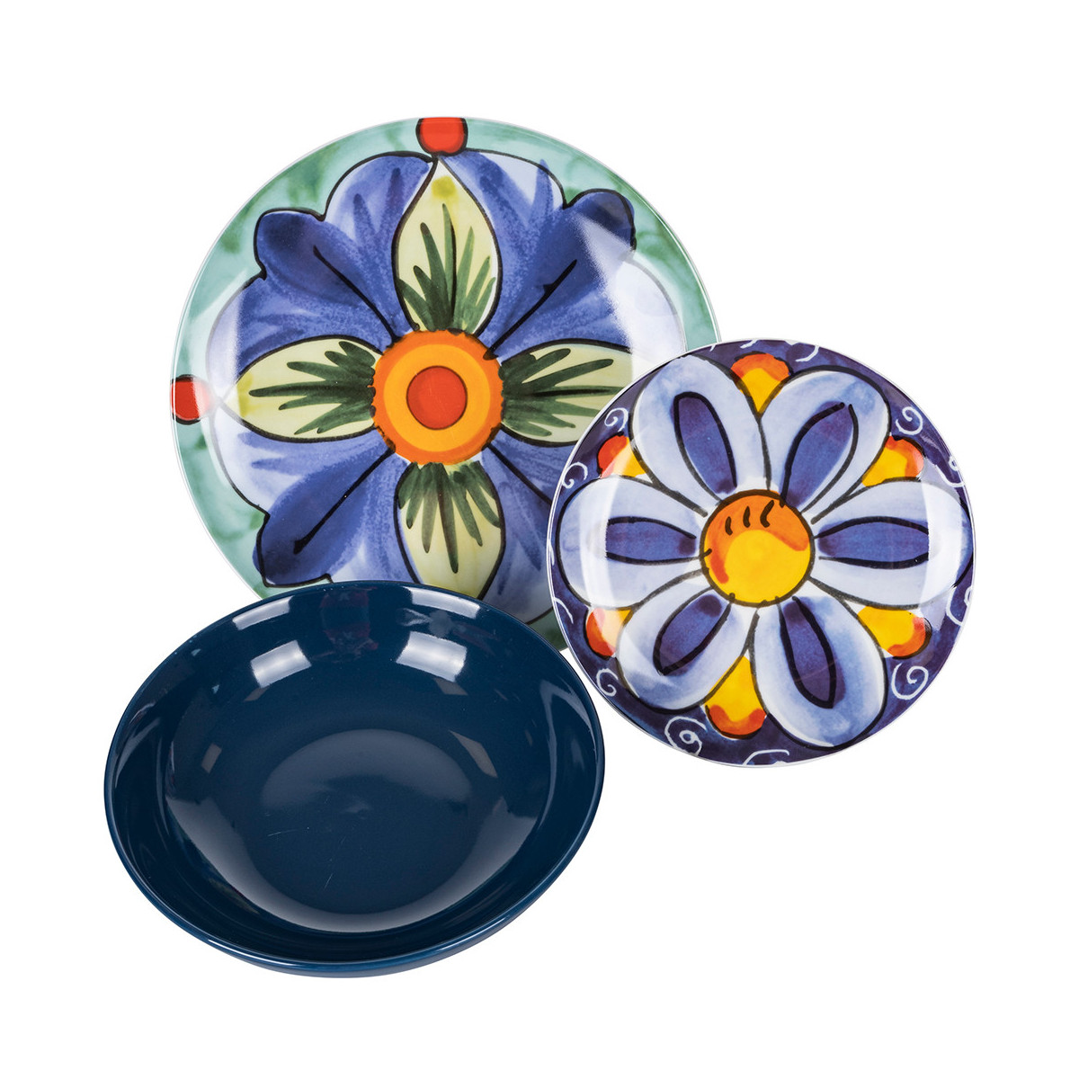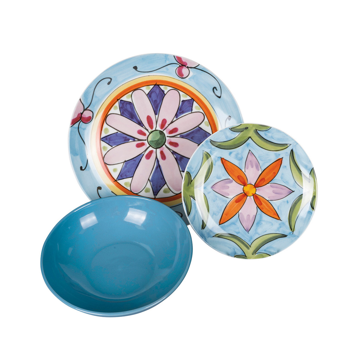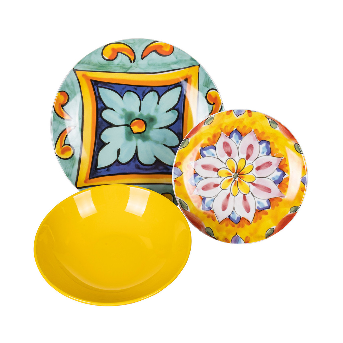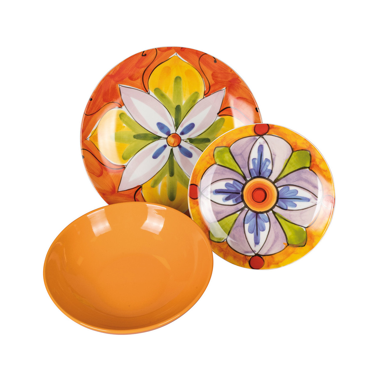 Il servizio si compone di 6 piatti piani, 6 piatti fondi, 6 piatti frutta