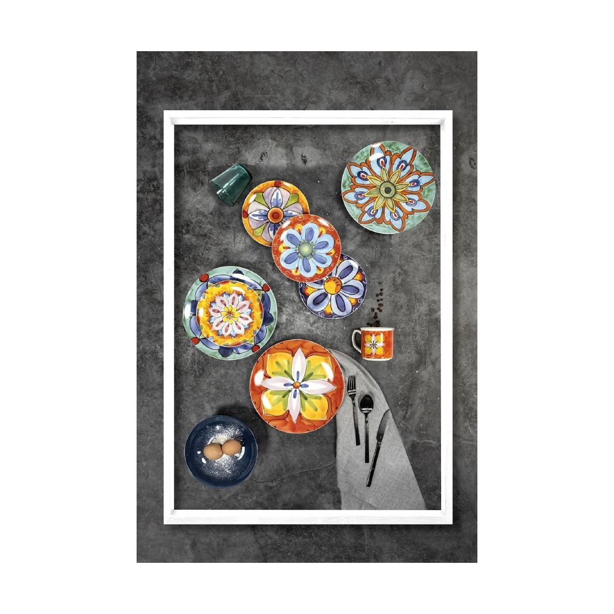 Un mosaico infinito di forme e colori, fiori delicati come le cromie che si alternano sui complementi di questa linea. Il risultato è un coloratissimo grande quadro pieno di giochi di colori, di forme e fantasie.