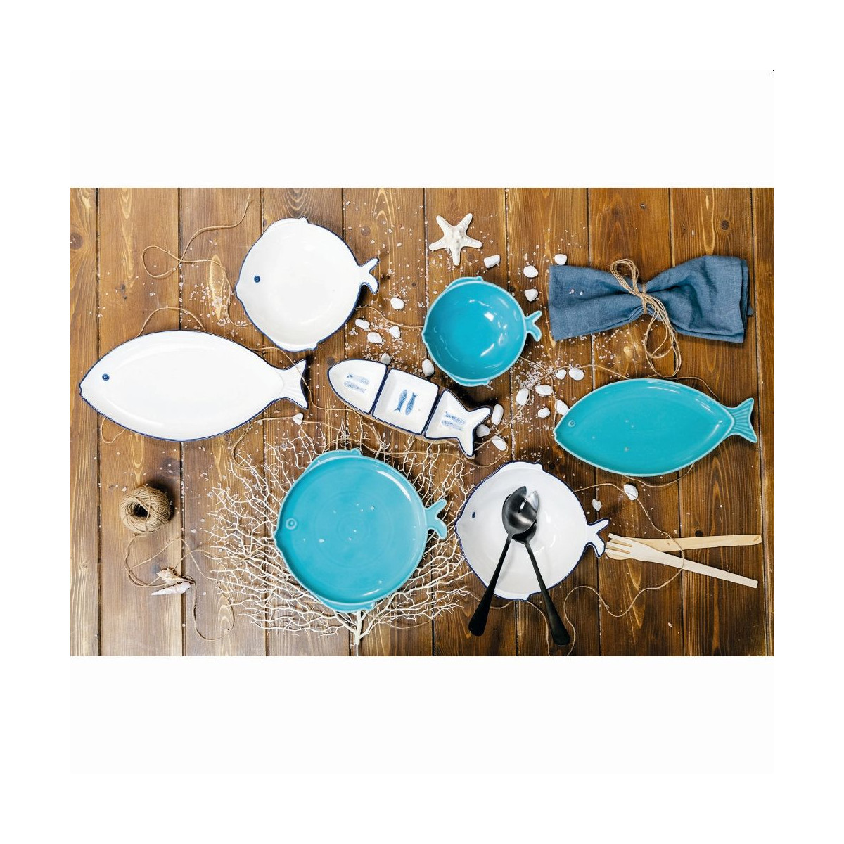 Villa D'Este Home Tivoli 'Open Fish', Set 2 Piatti da portata celeste