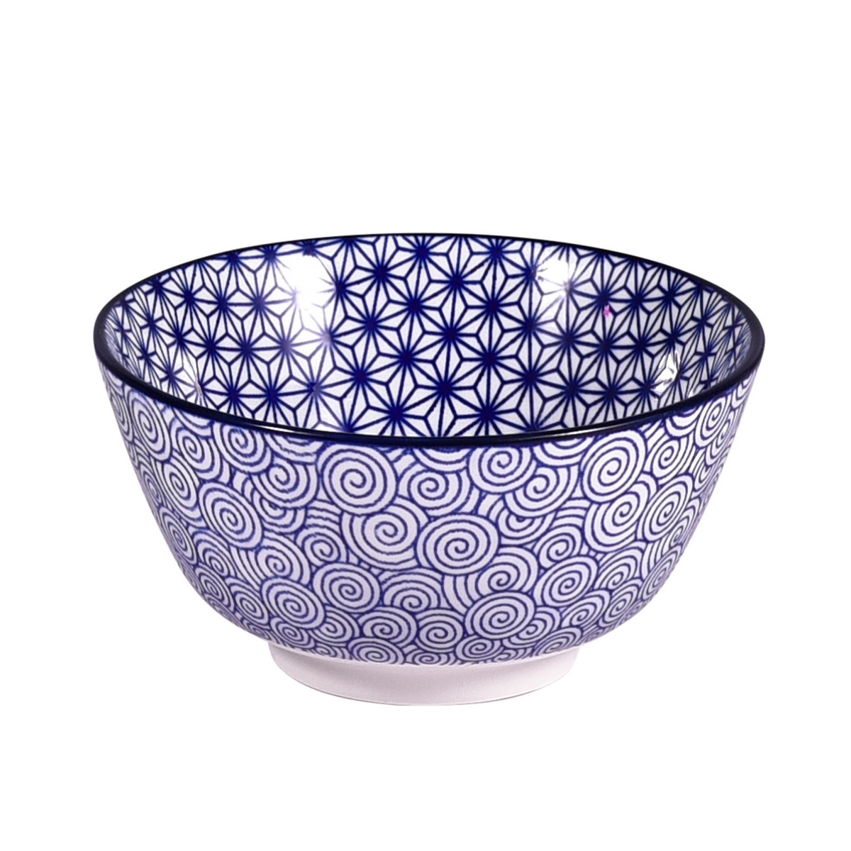 Ciotole dai motivi geometrici, e con accostamenti inediti di colori e pattern. Le stampe all'interno si differenziano da quelle all'esterno, regalando un tocco etnico alla tavola, ma anche al momento del pasto.