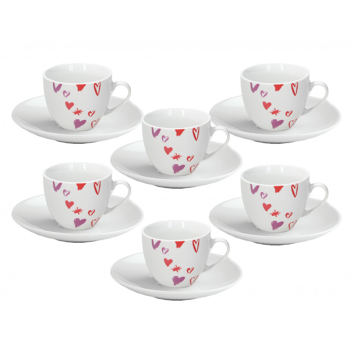 Tognana Porcellane Amore. Tipo: Set, Volume: 0,08 L, Colore del prodotto: Rosso, Bianco. Collezione: Madison. Quantità per pacco: 6 pz. Altezza: 60 mm, Diametro piattino: 10,5 cm, Peso: 971 g. Larghezza scatola principale: 315 mm, Lunghezza del cartone principale: 275 mm, Altezza scatola principale: 215 mm