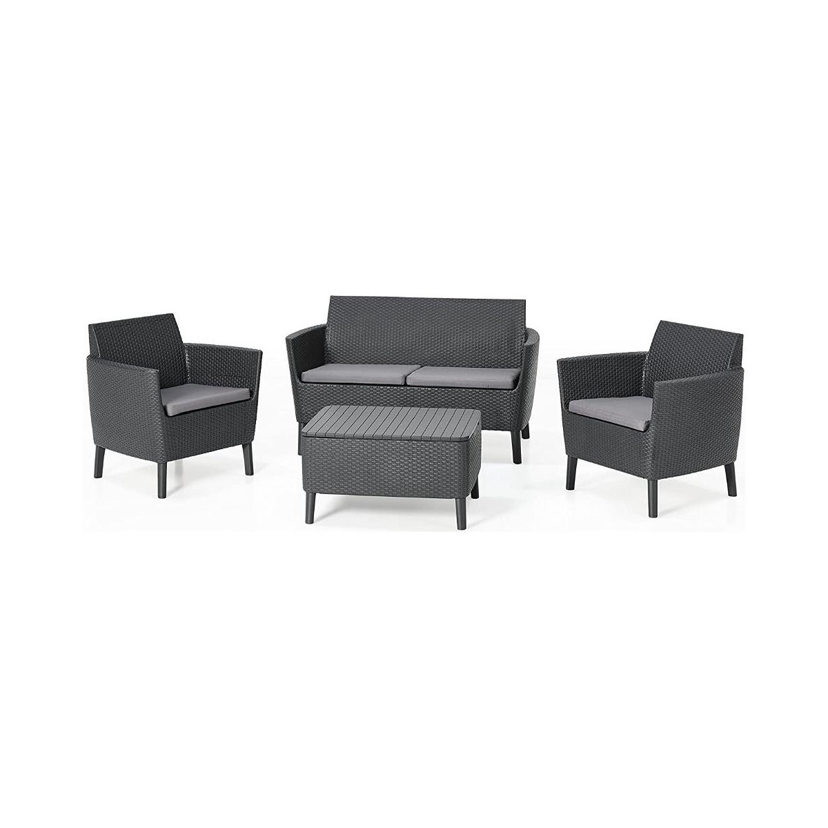 Allibert Salemo Grafite - Salotto da Giardino, 2 Poltrone e 1 Divano e 1 Tavolino