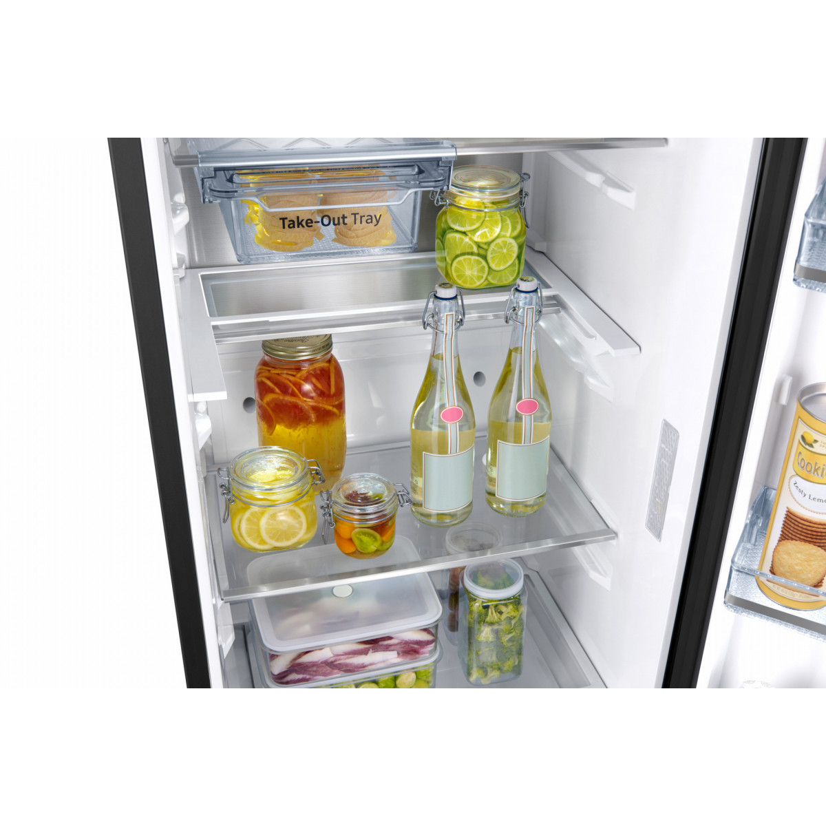 Lo scomparto Take-out ti consente di conservare e accedere più velocemente ai cibi di uso frequente, come latticini, dessert o vino. Puoi usarlo come un cassetto o puoi rimuovere il vassoio per raggiungere facilmente ogni cosa. E poiché è trasparente, è ancora più semplice organizzare il tuo frigorifero.