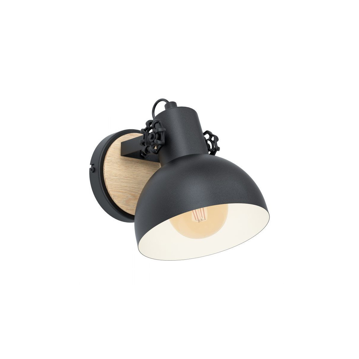 Eglo LUBENHAM Applique Struttura in Metallo e legno, Finitura Nero, Marrone 17,5x21xh20,5 cm
