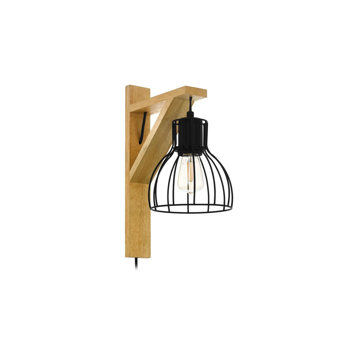 Eglo RAMPSIDE 1 Applique Struttura in legno, Finitura naturaleDiffusore in acciaio, Finitura Nero 14x24xh33 cm