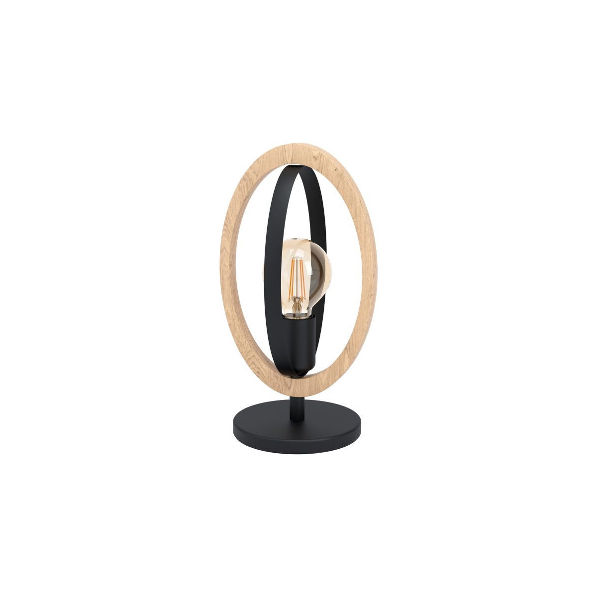 Lampada da Tavolo Struttura in Metallo e Legno, Finitura nero, Marrone 19x16xh34,5 cm