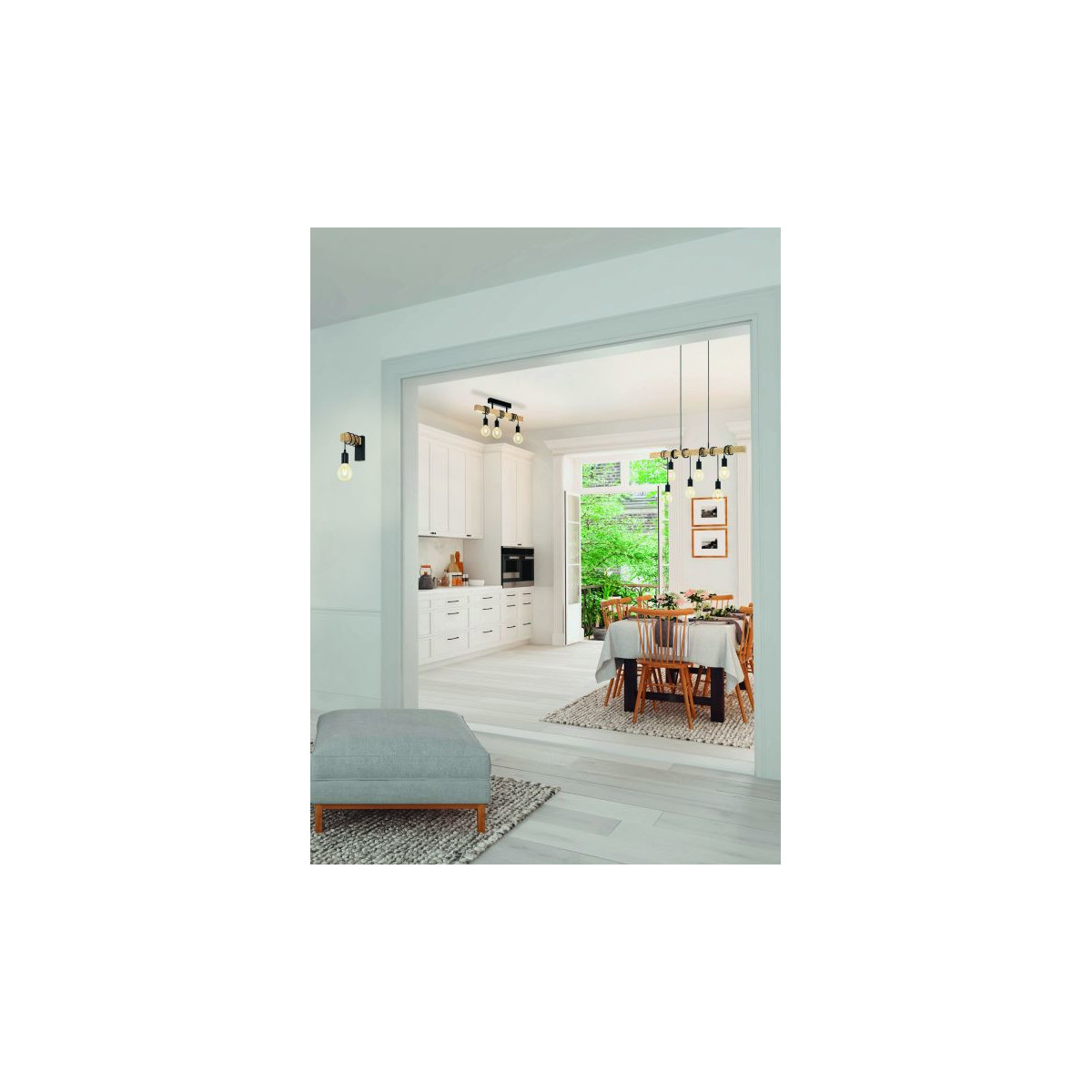 Eglo TOWNSHEND Plafoniera Struttura in Metallo e Legno, Finitura Nero, Marrone 55x10,5xh26,5 cm