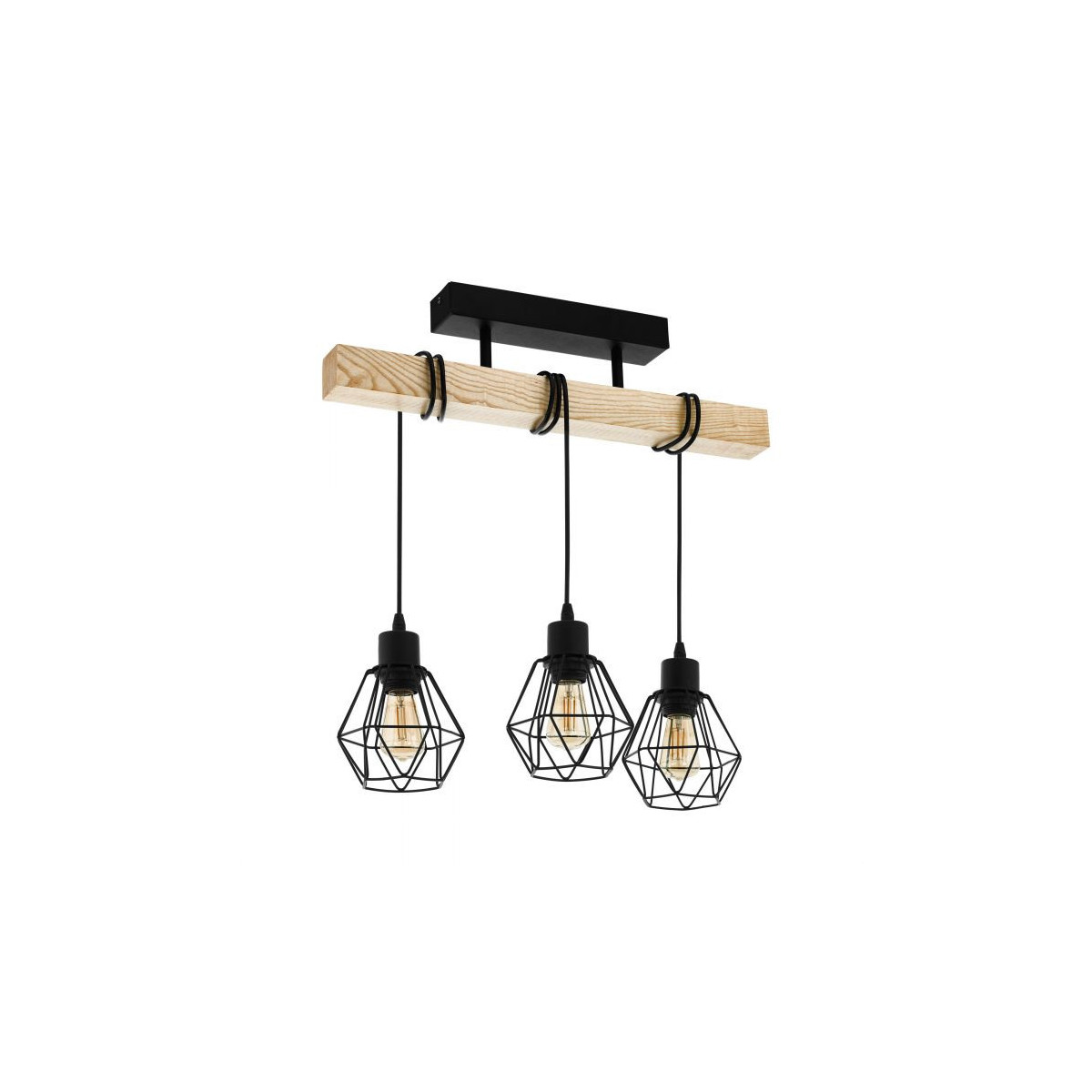 Eglo TOWNSHEND 5 Plafoniera Struttura in Metallo e legno,, Finitura Nero-Marrone 55x20xh36 cm
