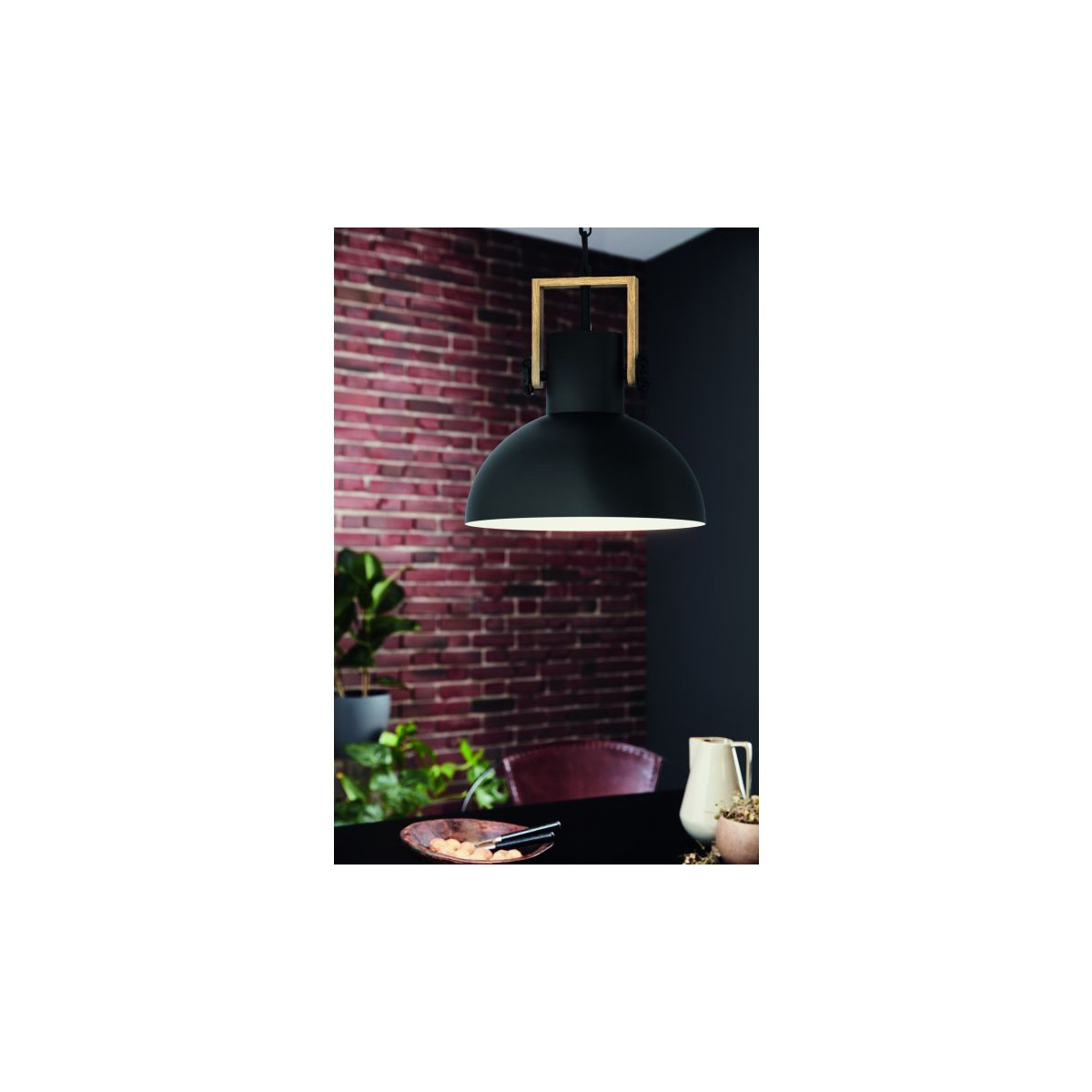 Eglo LUBENHAM Lampada a Sospensione Struttura in metallo e legno, Finitura Nero, Marrone Ø30xh110 cm, Lampadina non Incl.