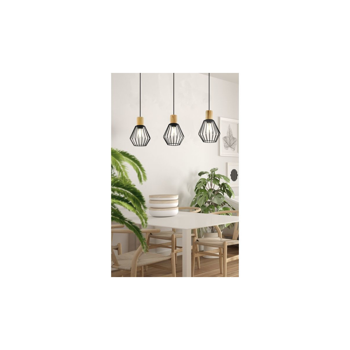 Eglo PALMORLA Lampada a Sospensione Struttura in Metallo e Legno, Finitura Nero, marrone 76x16xh110 cm, Lampada non Incl.