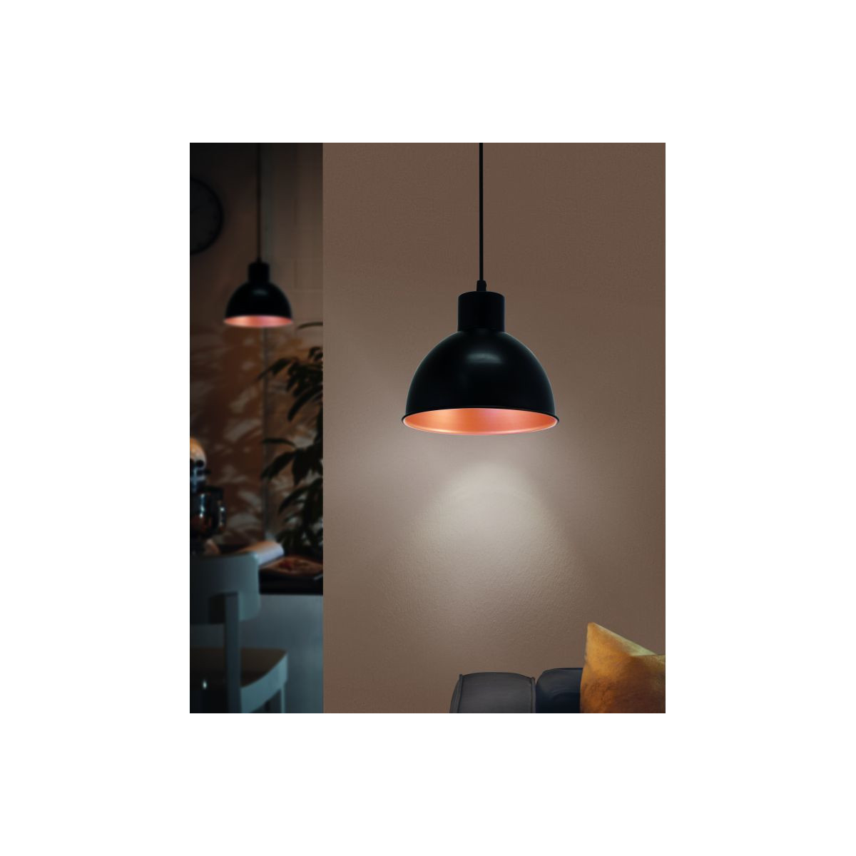 Eglo TRURO 1 Lampada a Sospensione Struttura in Metallo, Finitura Nero, Rame Ø21xh110 cm, Lampadina non Incl.
