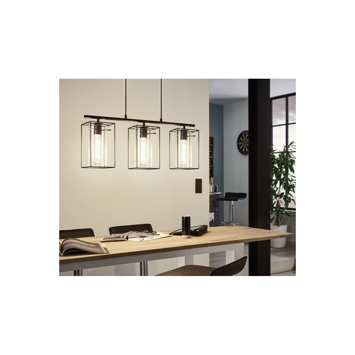 Eglo LONCINO Lampada a Sospensione Struttura in Metallo, Finitura Nero 74,5x15xh110 cm, Lampadina non Incl.