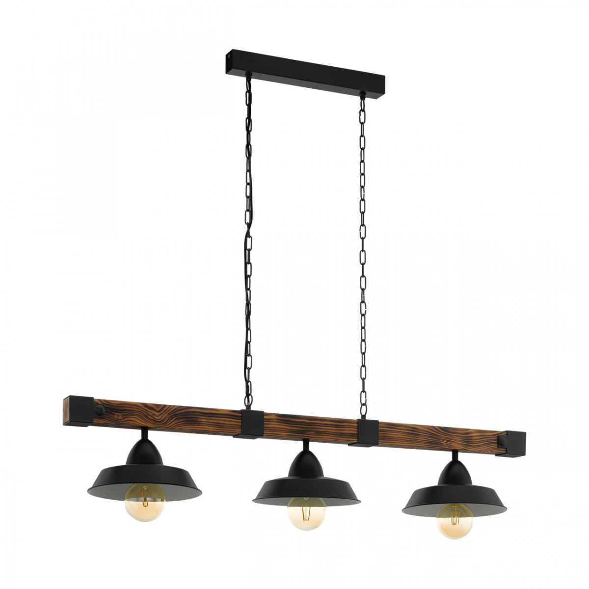 Eglo OLDBURY Lampada a Sospensione Struttura in Metallo e Legno, Finitura Nero/Marrone Anticato 118x26xh110cm, Lampadina non Inc