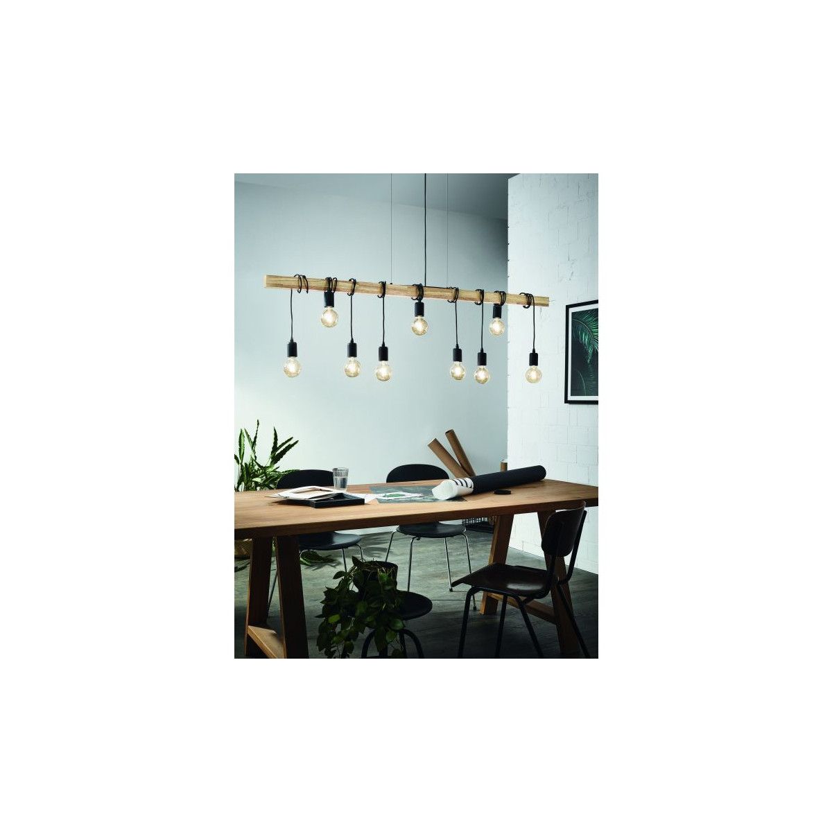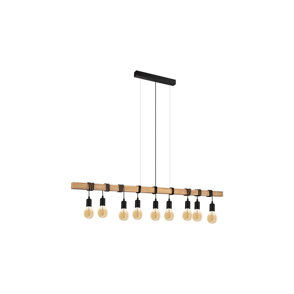 Eglo TOWNSHEND Lampada a Sospensione Struttura in Legno, Finitura marrone, Nero 150x10xh110 cm, Lampadina non Incl.
