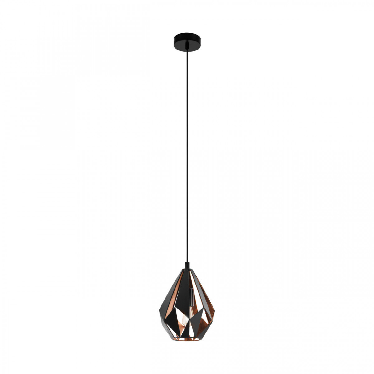Eglo CARLTON 1 Lampadina a Sospensione Struttura in Metallo, Finitura Nero, Rame Ø20,5xh110 cm, Lampadina non Incl.