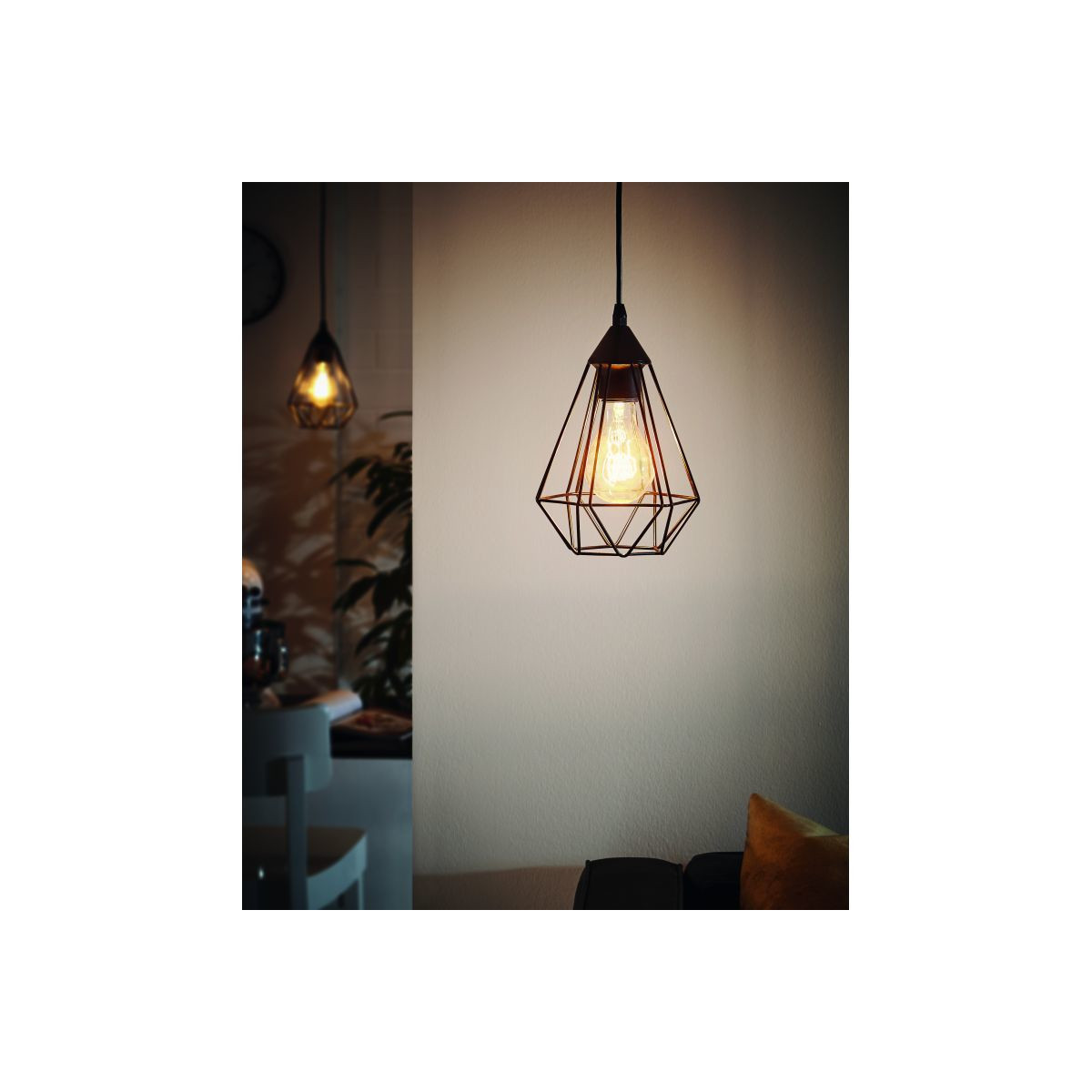 Eglo TARBES Lampadina a Sospensione Struttura in policarbonato, Finitura Nero Ø17,5xh110 cm, Lampadina non Incl.
