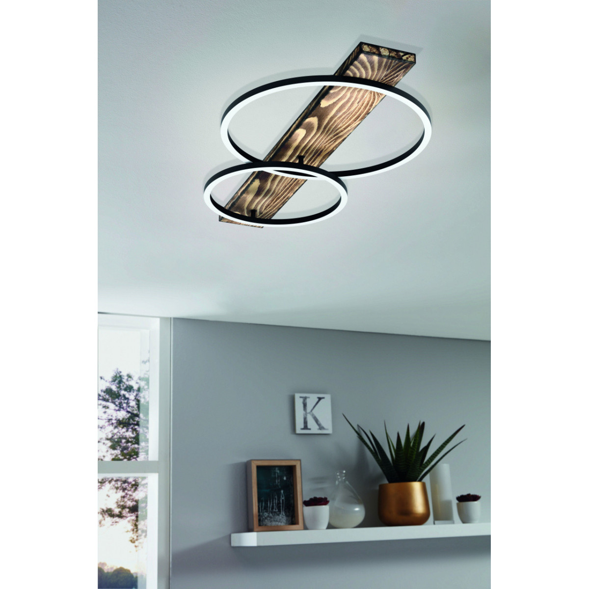 Eglo BOYAL Plafoniera Struttura in Metallo e Legno, Finitura Nero-Marrone AnticatoDiffusore in Policarbonato, Finitura Bianco