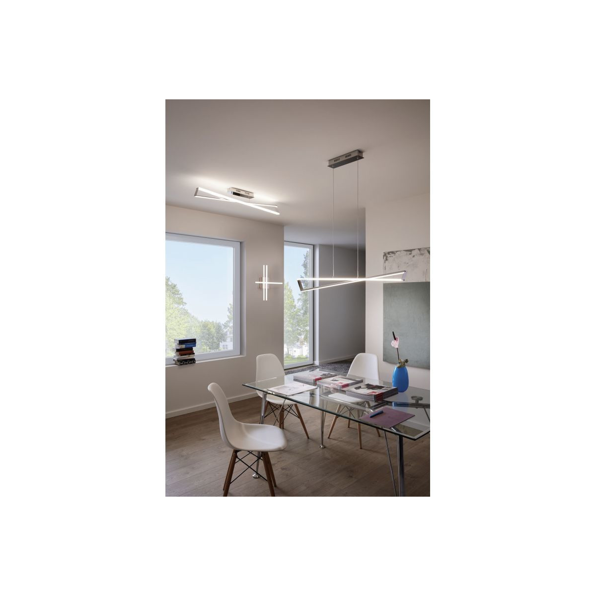 Eglo LASANA 1 Plafo-Applique Struttura in Metallo, Finitura Cromo, Diffusore in policarbonato, Finitura Bianco 50x16xh9,5 cm